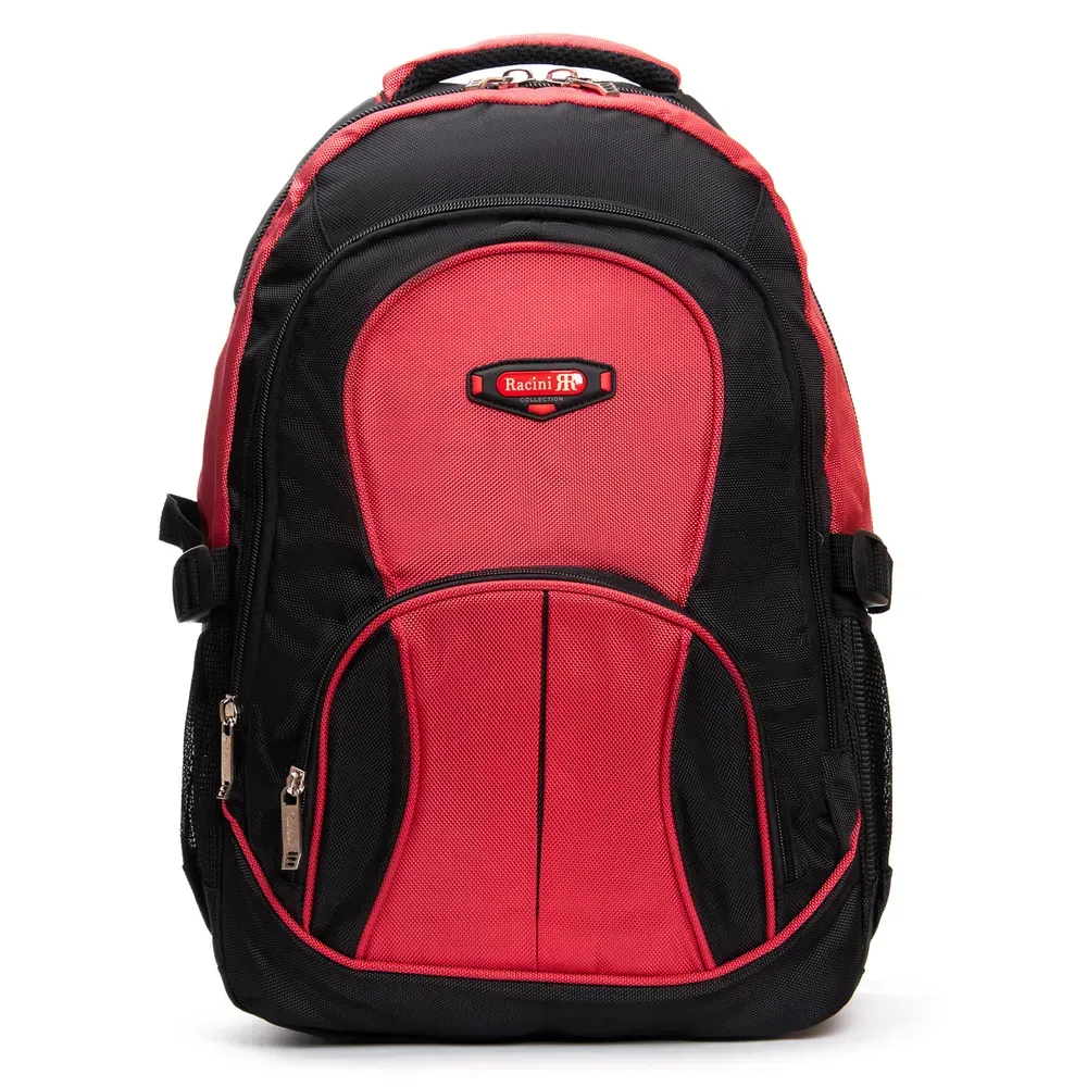 Городской рюкзак "Racini". Плотная спинка с мягкими вставками. Внутри рюкзака два отделения на молнии. В первом отделении расположен карман- органайзер, во-втором отделении есть карман для ноутбука и карман для смартфона. На фасаде находится вместительный карман на молнии. Снаружи на боковых сторонах рюкзака расположены карманы-сетки для бутылок воды объемом 0,5 литров.