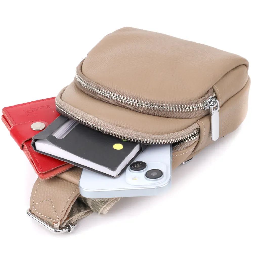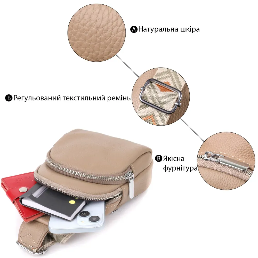 Слінг сумка з натуральної шкіри для жінок Vintage 22939 Бежевий