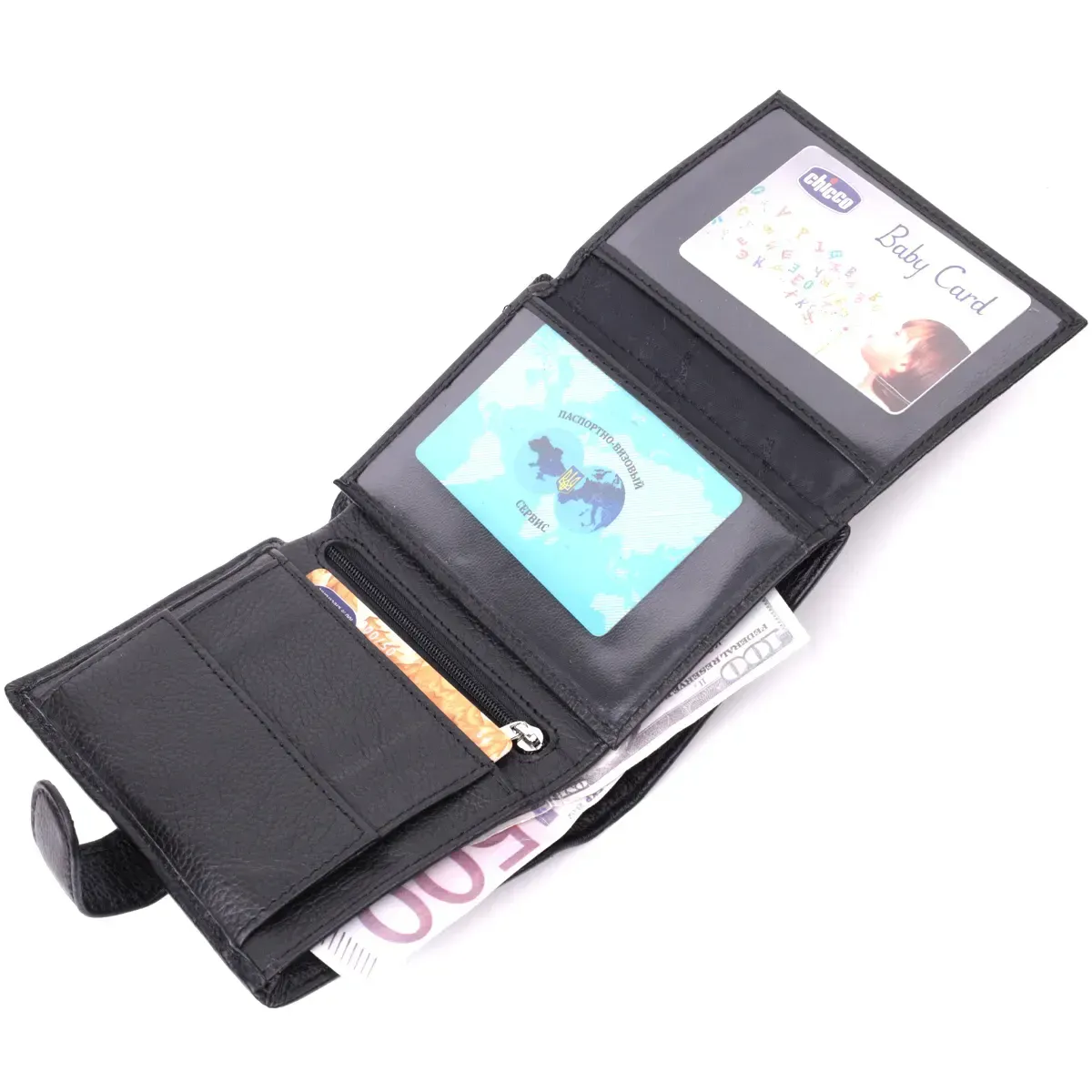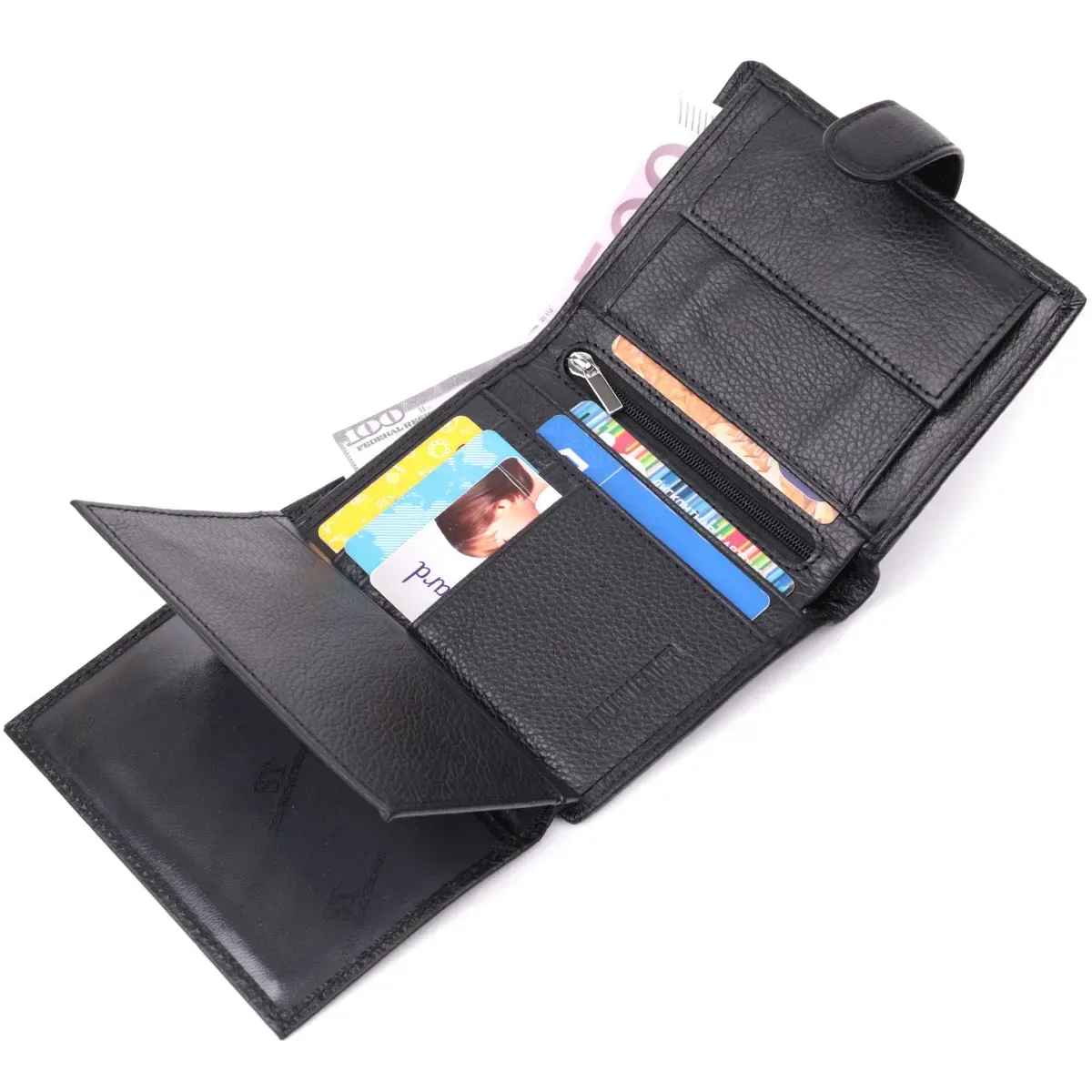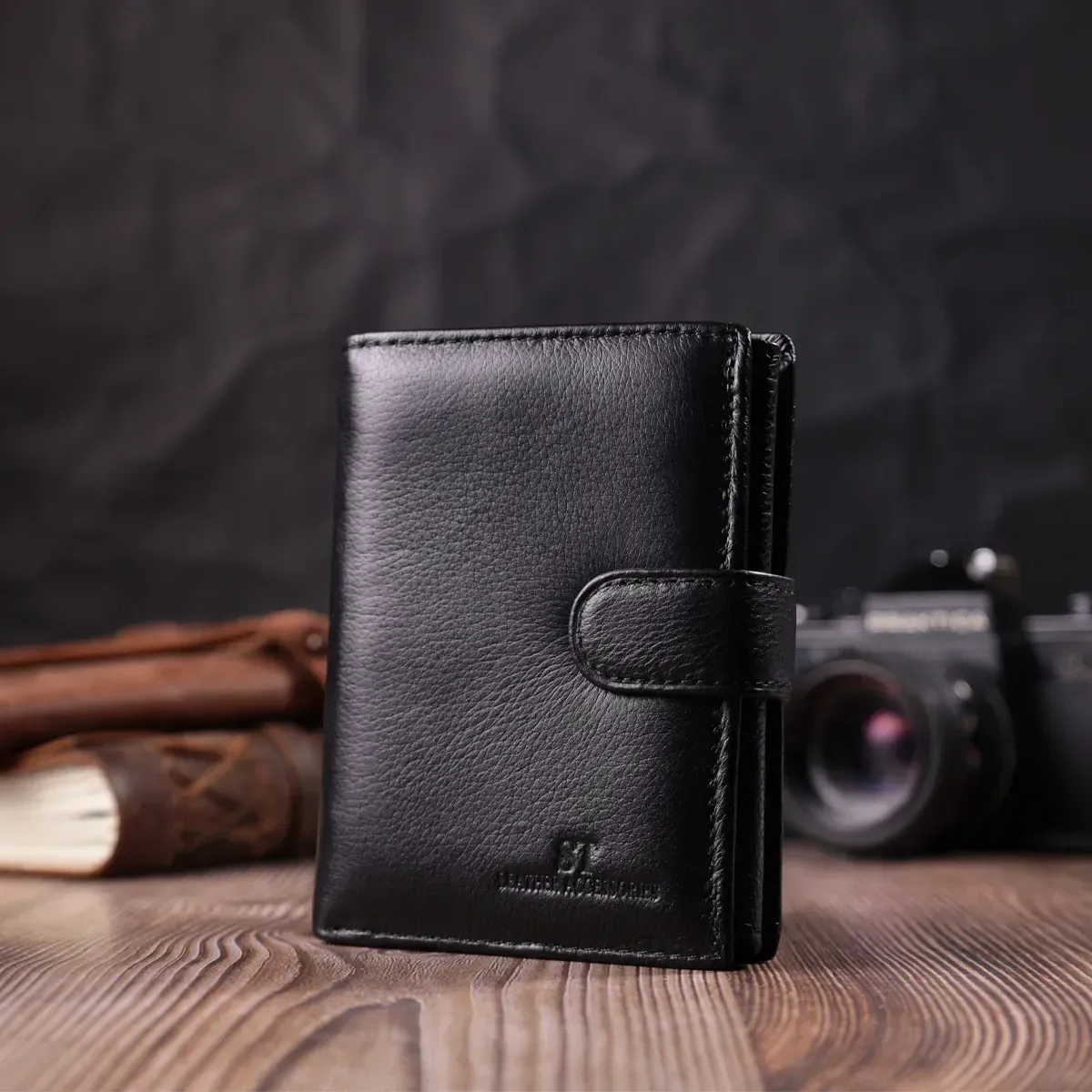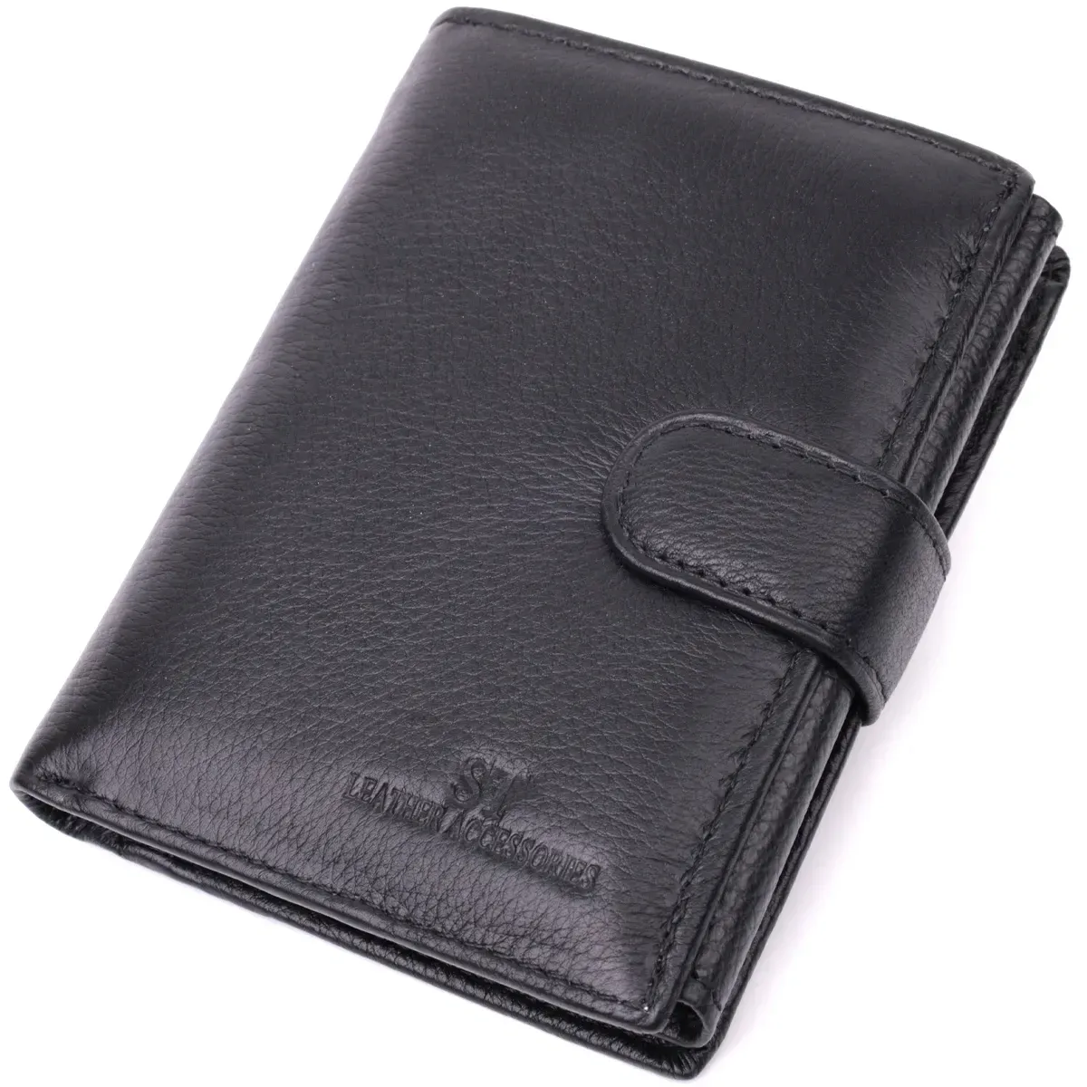 Солидный мужской бумажник вертикального формата из натуральной кожи ST Leather 22462 Черный