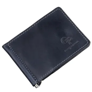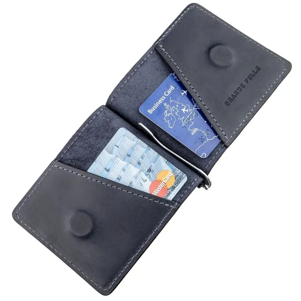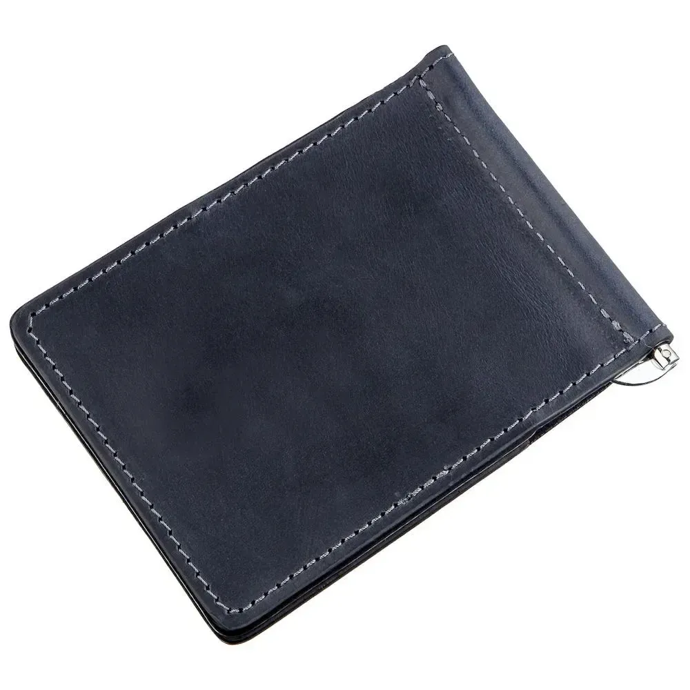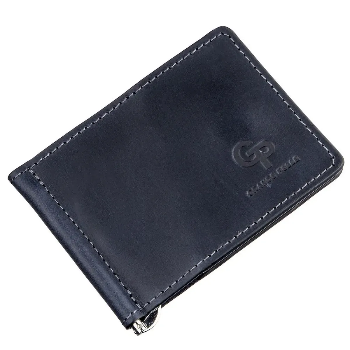 Солидный зажим из натуральной кожи GRANDE PELLE 11201 Синий