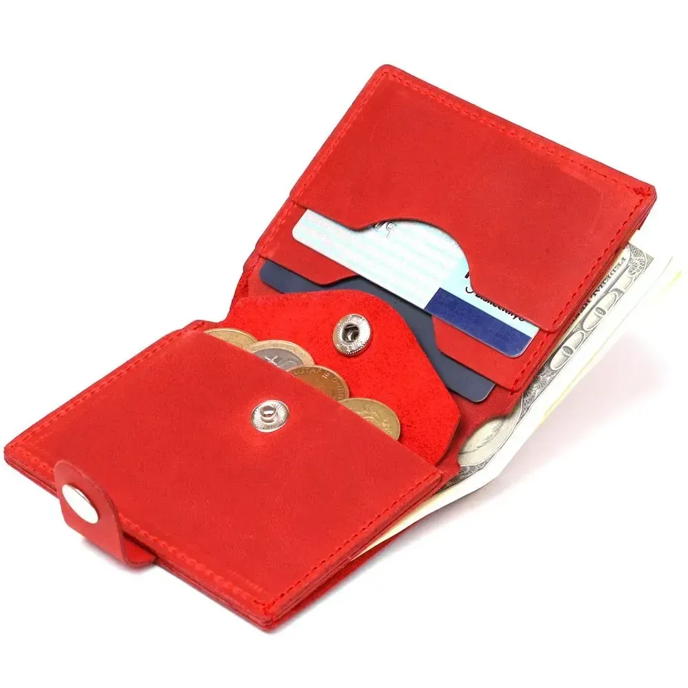 Красивое женское матовое портмоне в насыщенном красном цвете от украинского производителя. Выполнено изделие из натуральной кожи с отменными эксплуатационными показателями. Внутри есть просторное отделение на всю длину для банкнот, слоты для пластиковых карточек и небольшая монетница на кнопке.