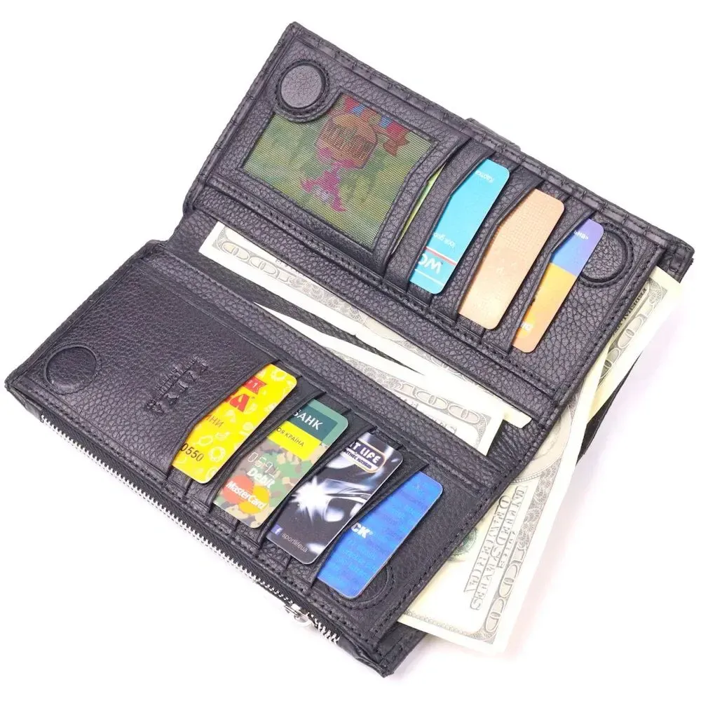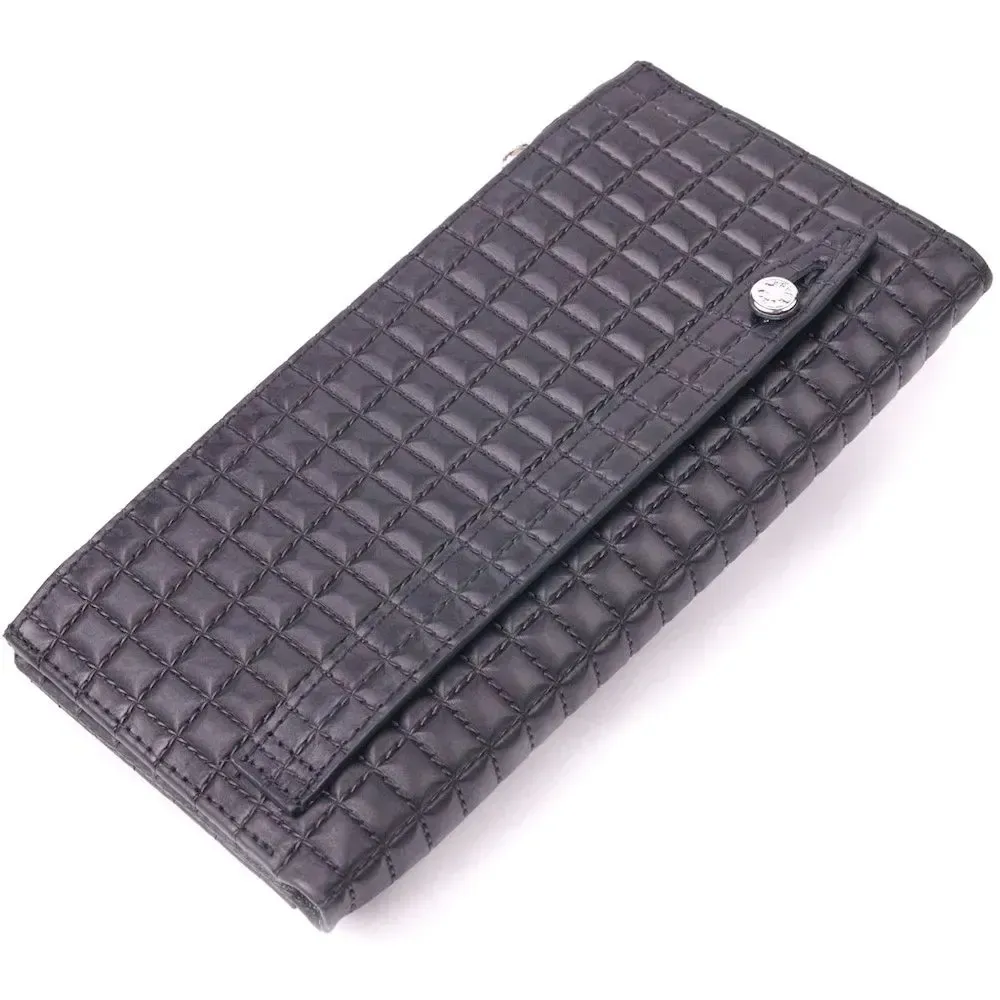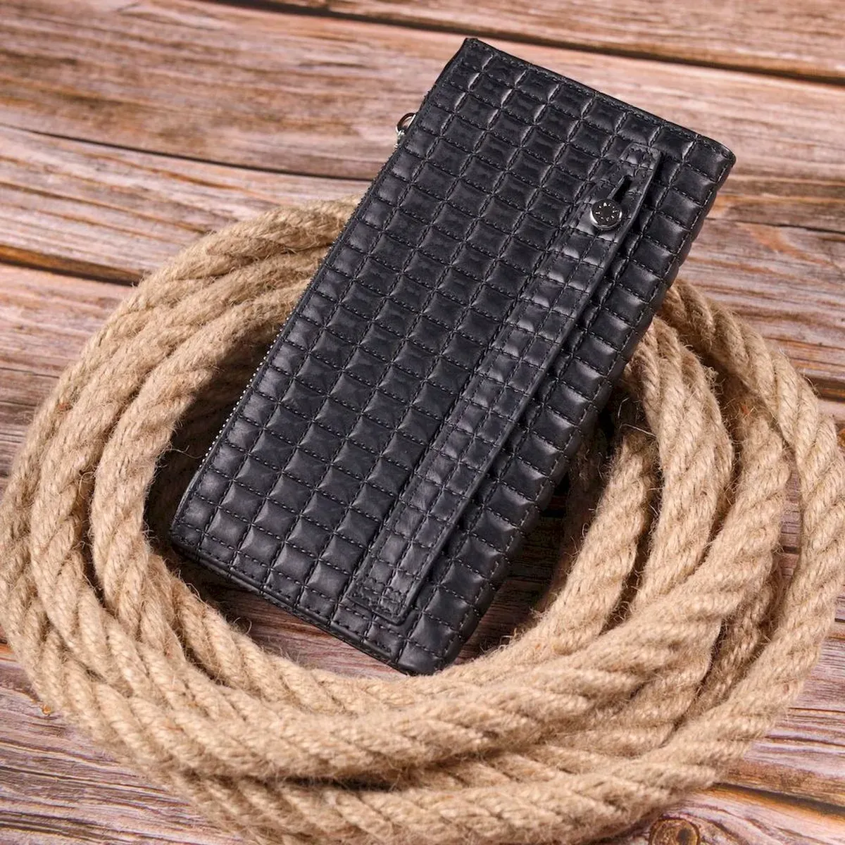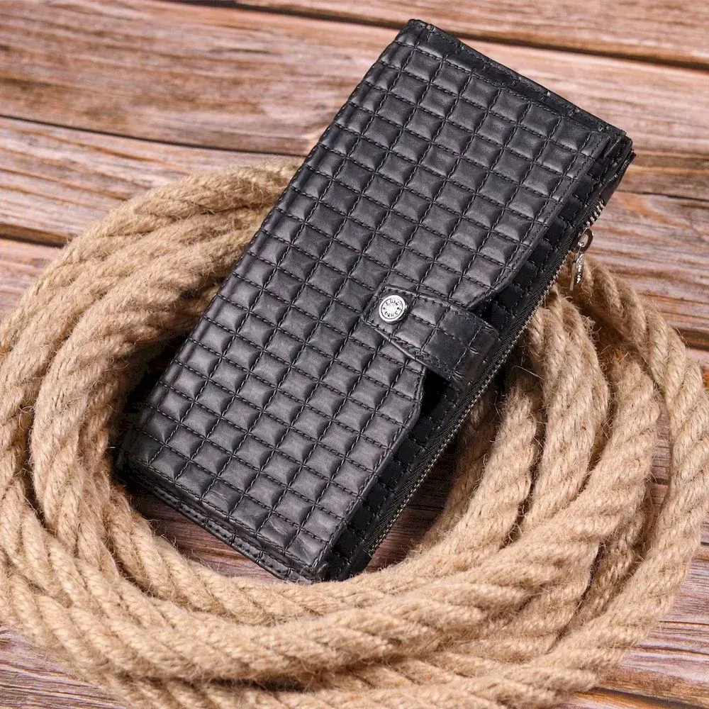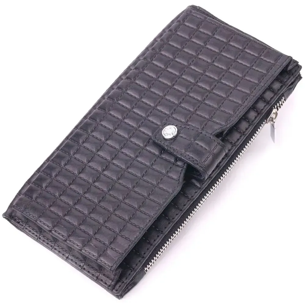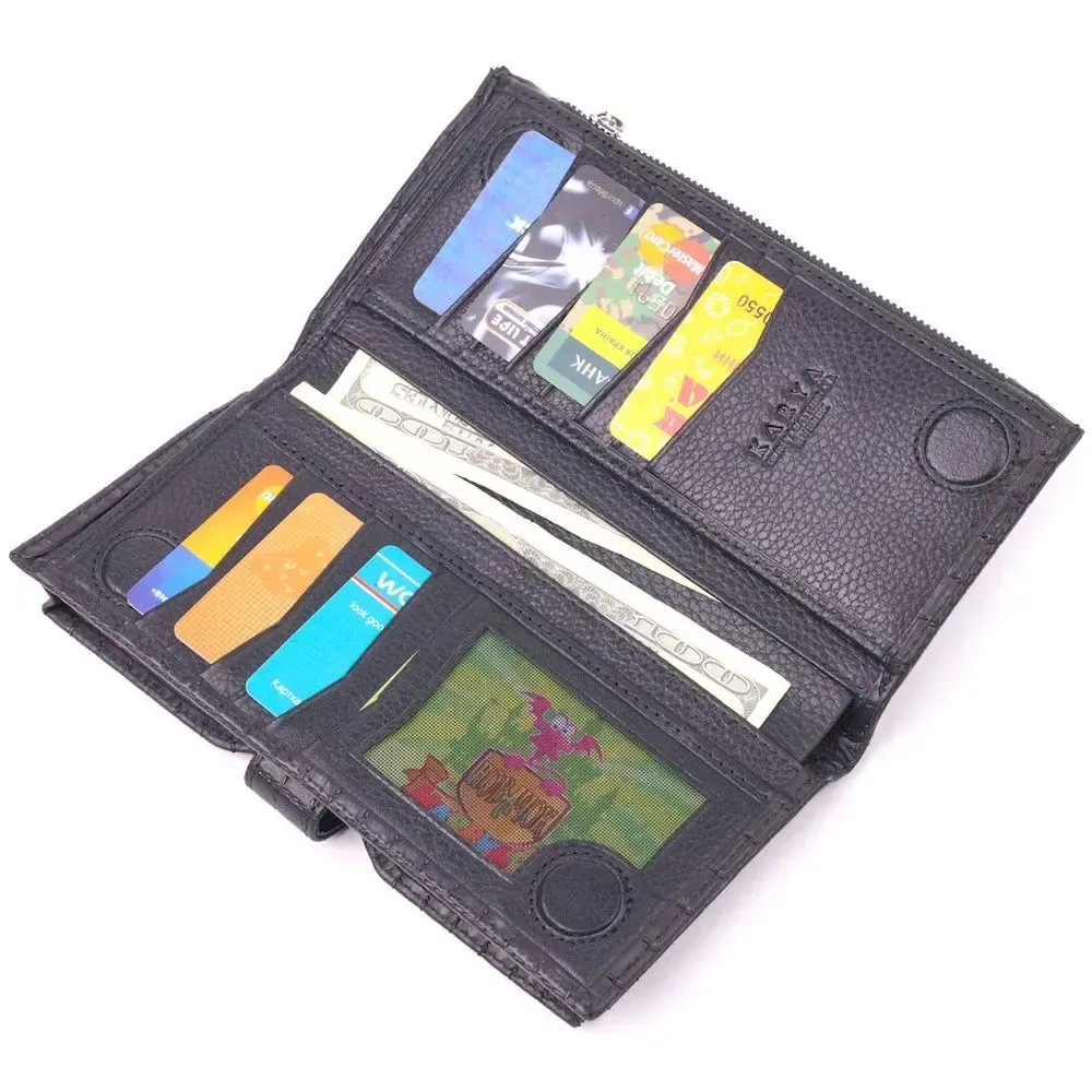 Стеганый вертикальный мужской бумажник из натуральной кожи KARYA 21425 Черный