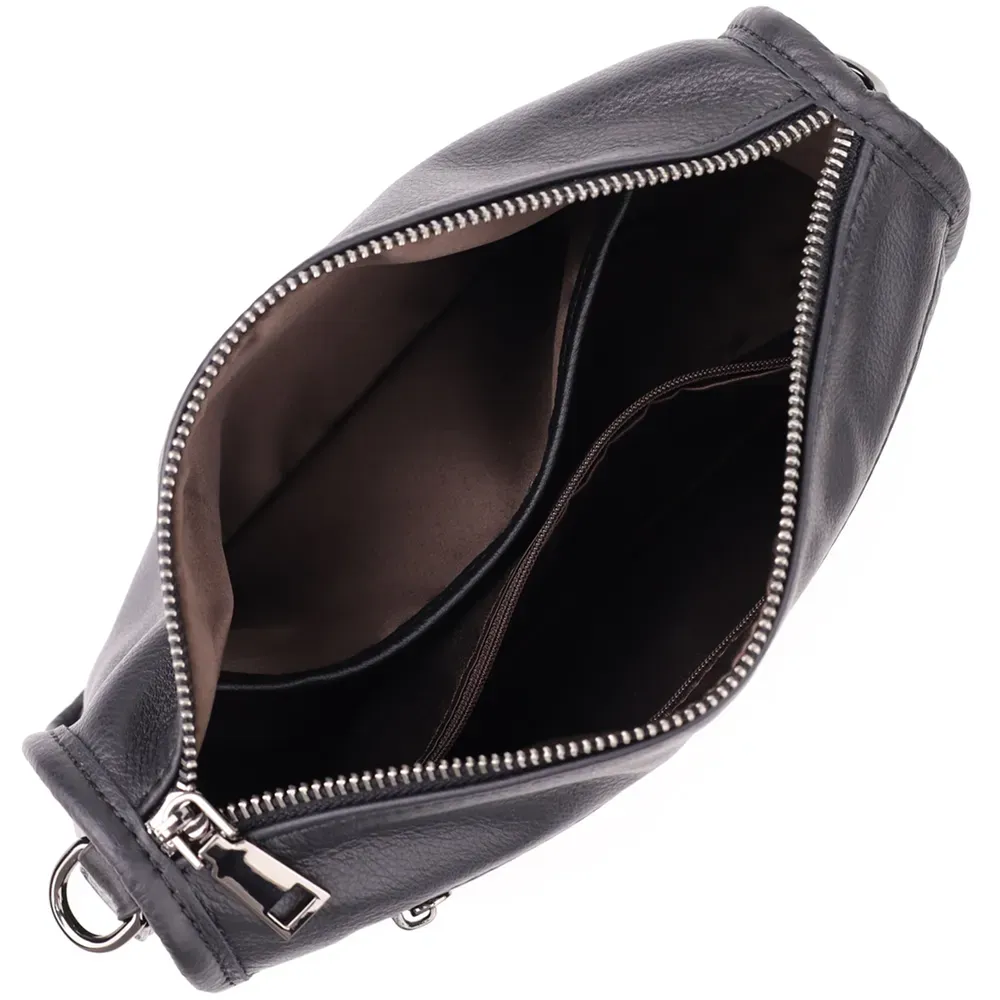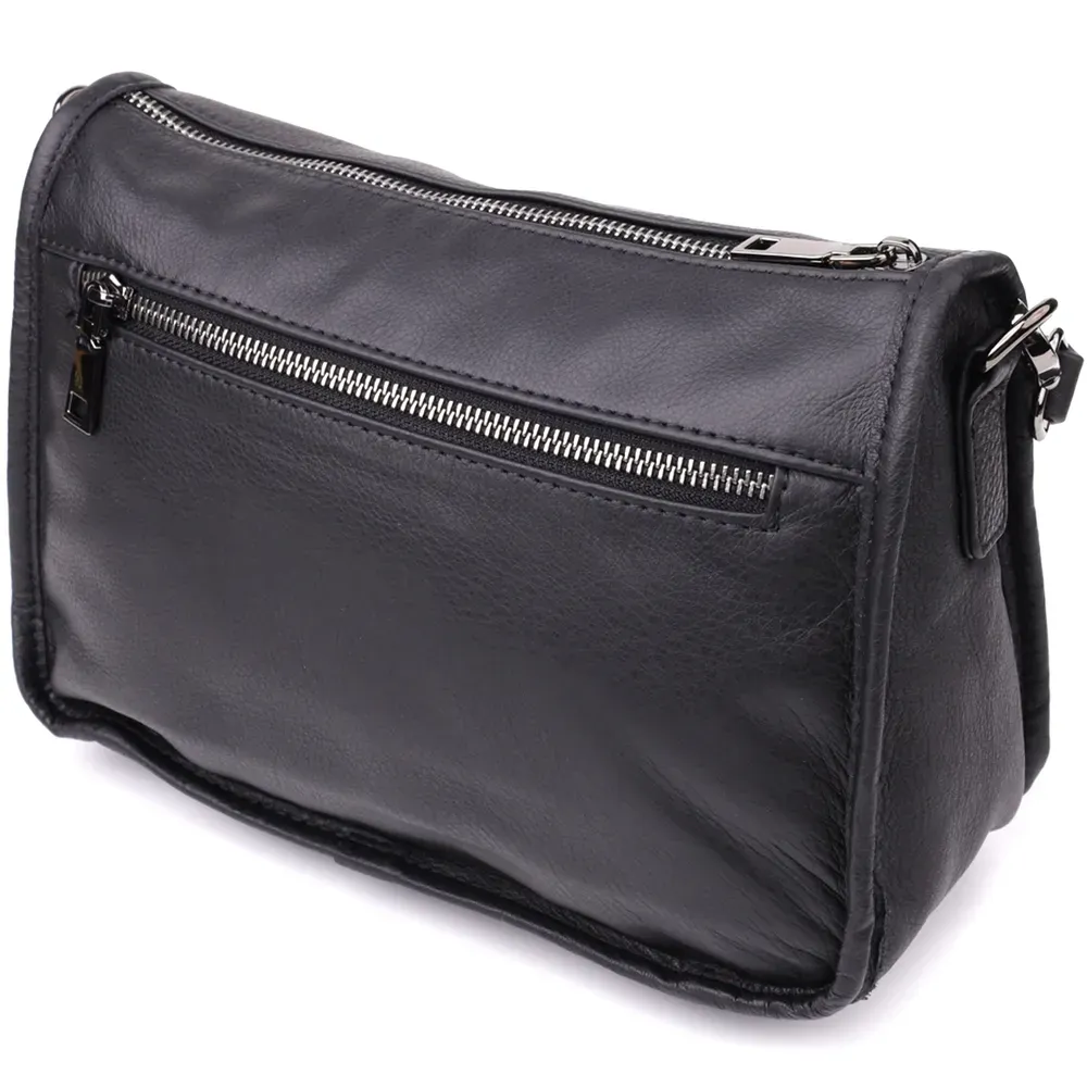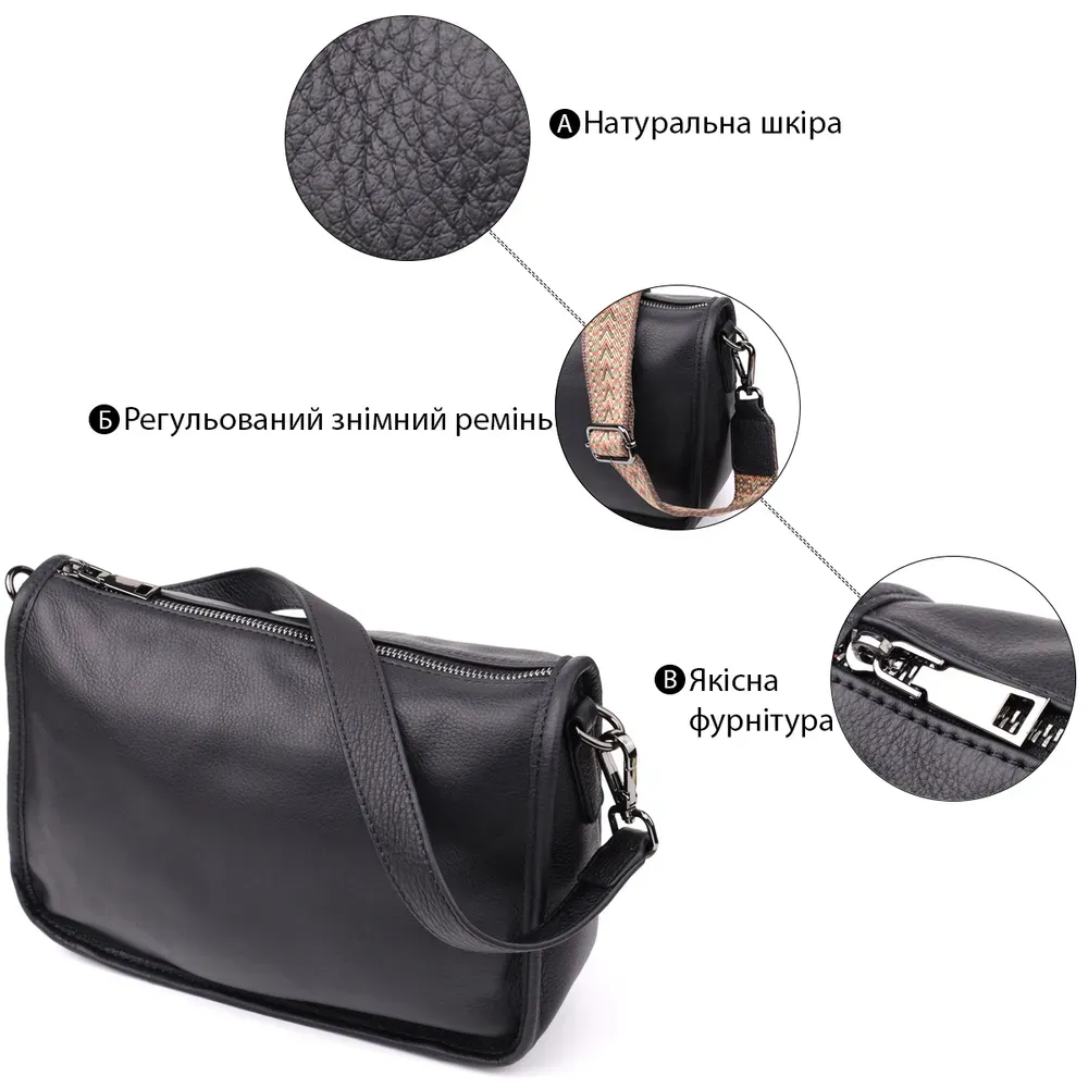 Чорна шкіряна сумка з двома ремінцями - універсальний аксесуар, який стане надійним та стильним супутником у повсякденному житті.