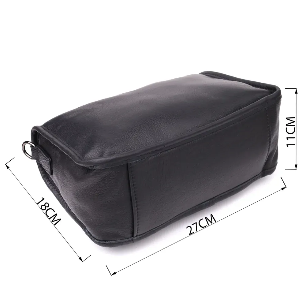 Класична чорна шкіряна сумка – втілення універсального стилю та продуманої функціональності. Виконана з натуральної шкіри високої якості, вона відрізняється зносостійкістю та елегантним зовнішнім виглядом, який легко впишеться як у повсякденний, так і у діловий гардероб.