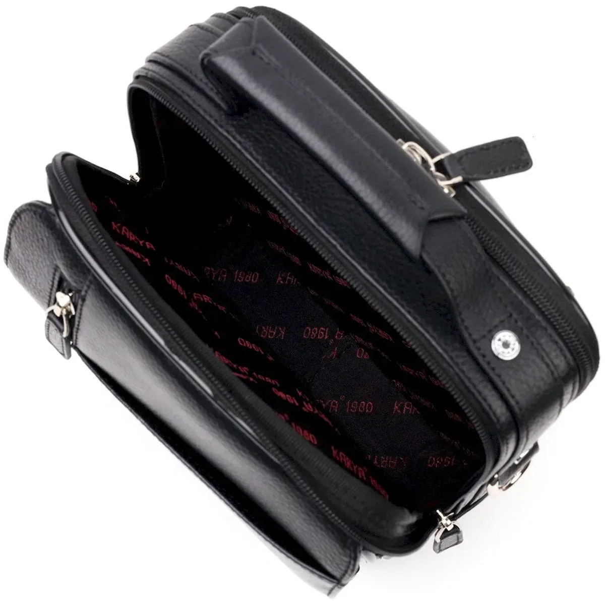 Мужская сумка через плечо Karya выполнена из натуральной кожи. Удобная и многофункциональная модель. Отличный вариант на каждый день. Кожа флотар устойчива к износам и долго носится. На ней не видно царапин и выглядит она очень эффектно. Модель дополнена фурнитурой цвета серебра. Внутри сумки качественная подкладка. Будет идеальным вариантом для подарка близкому человеку.
