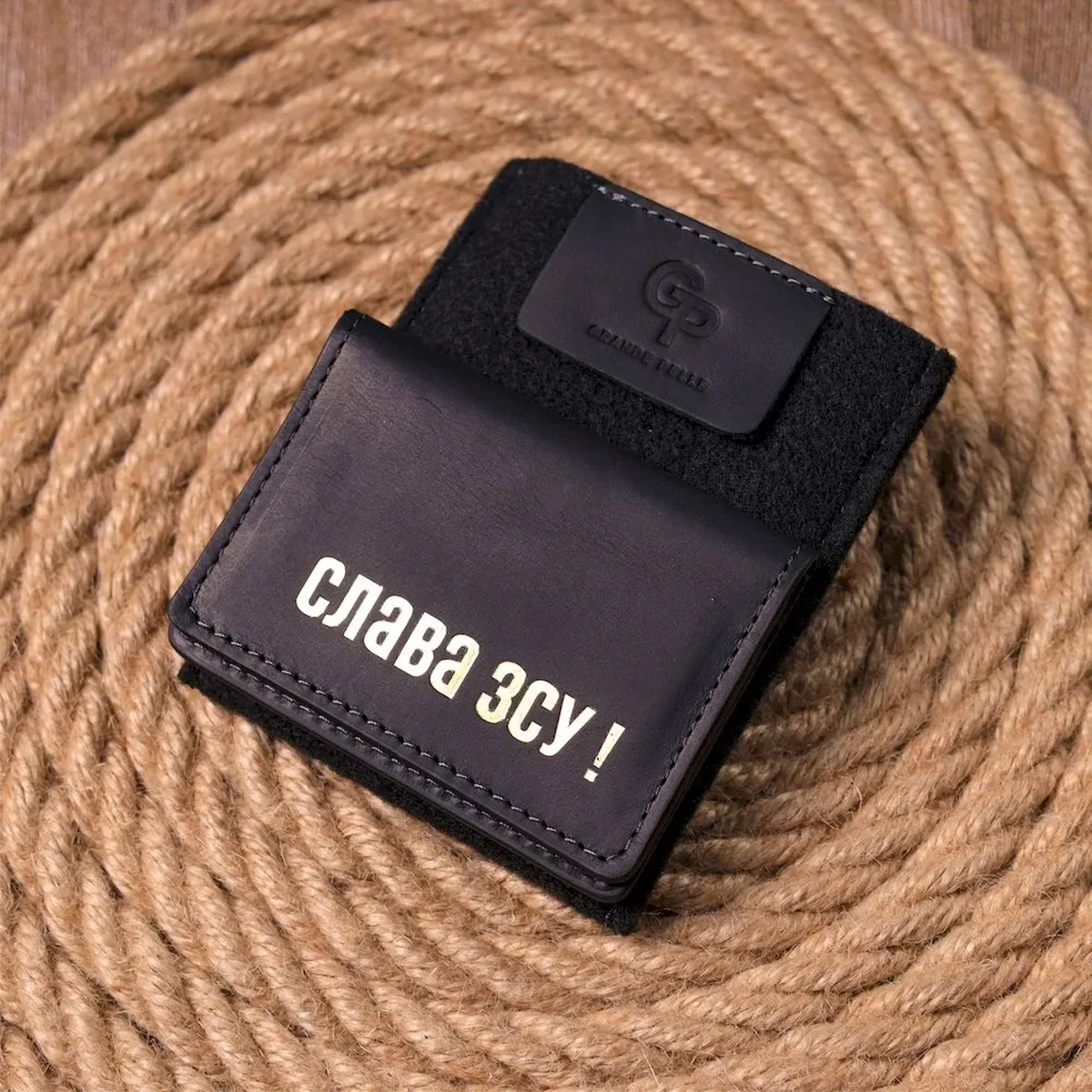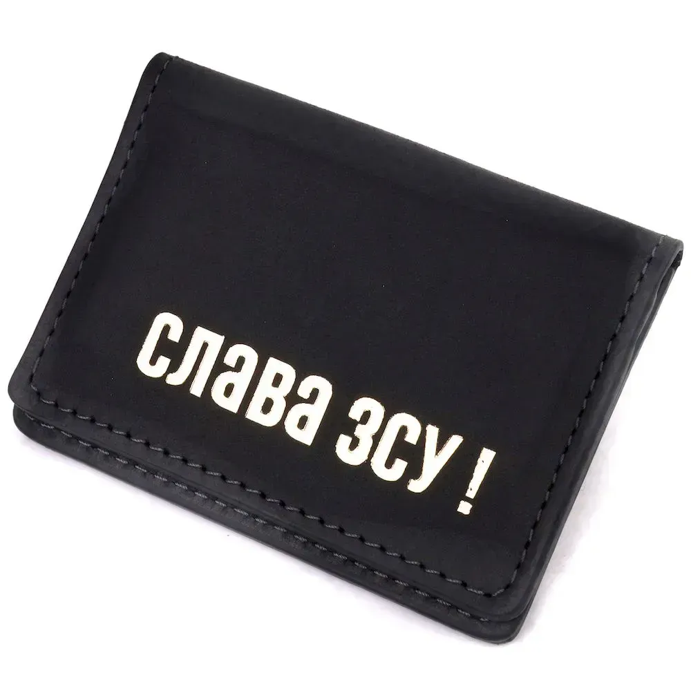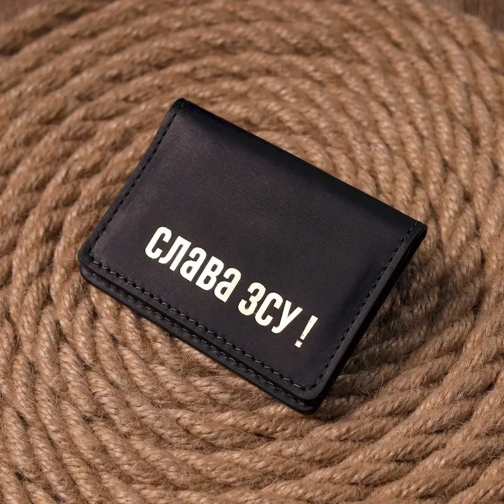 Стильная обложка на документы в винтажной коже Слава ЗСУ GRANDE PELLE 16703 Черная