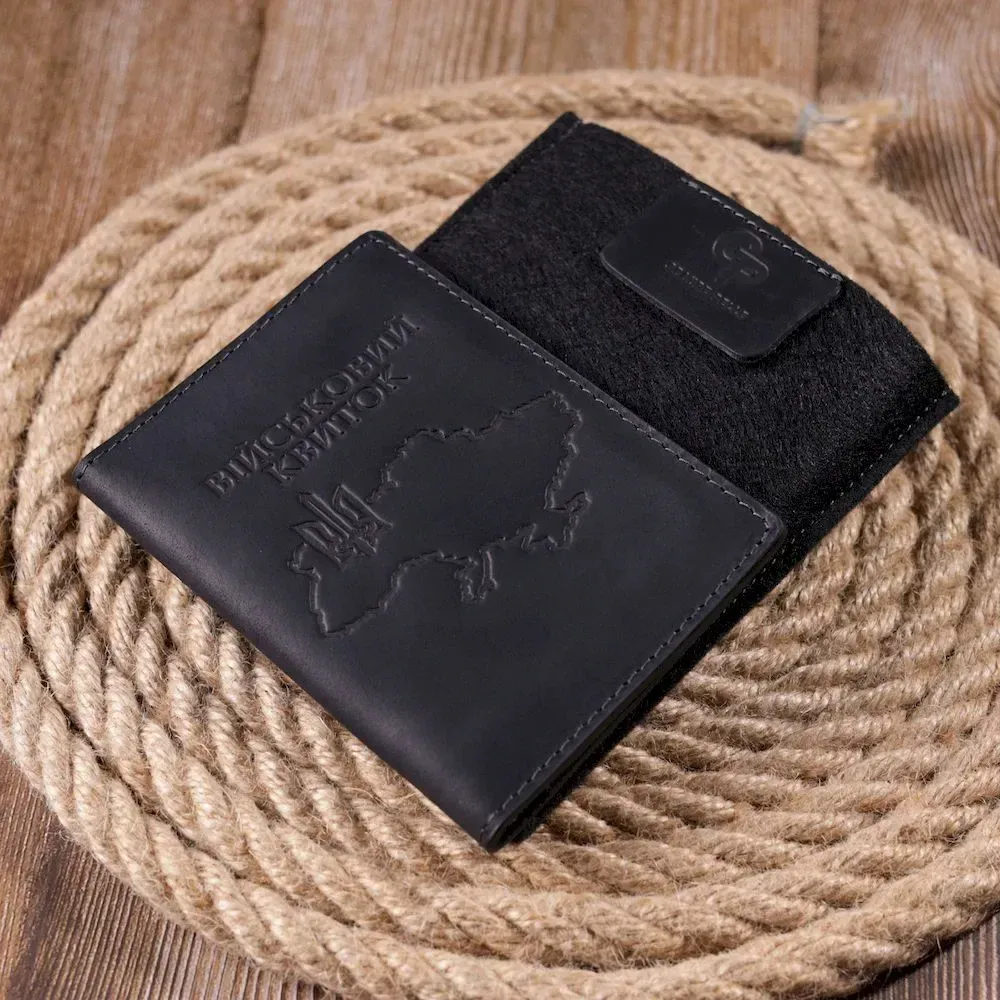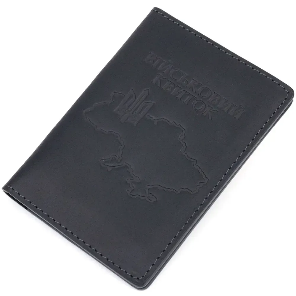 Стильная обложка на военный билет в винтажной коже Карта GRANDE PELLE 16780 Черная