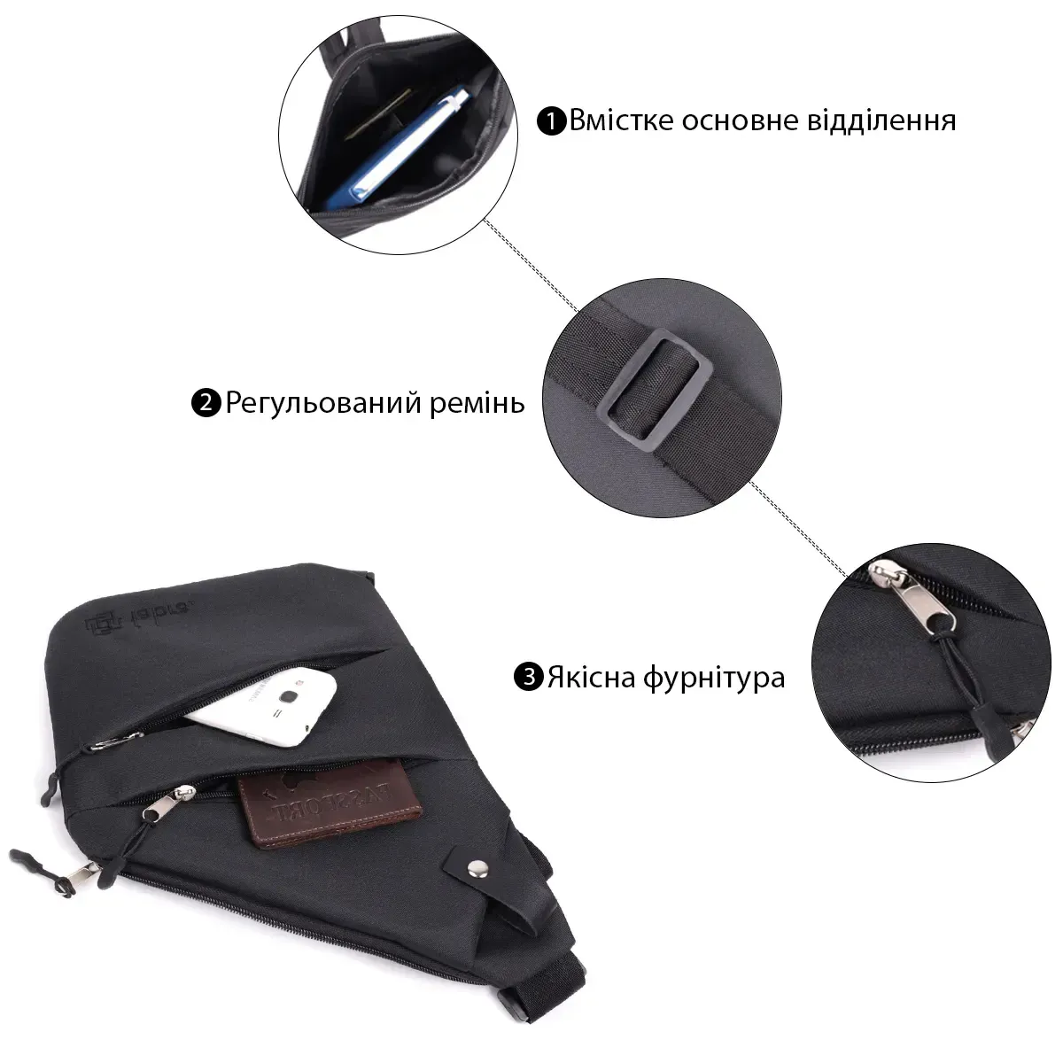 Стильная повседневная слинг-сумка из качественного полиэстера FABRA 22586 Черный