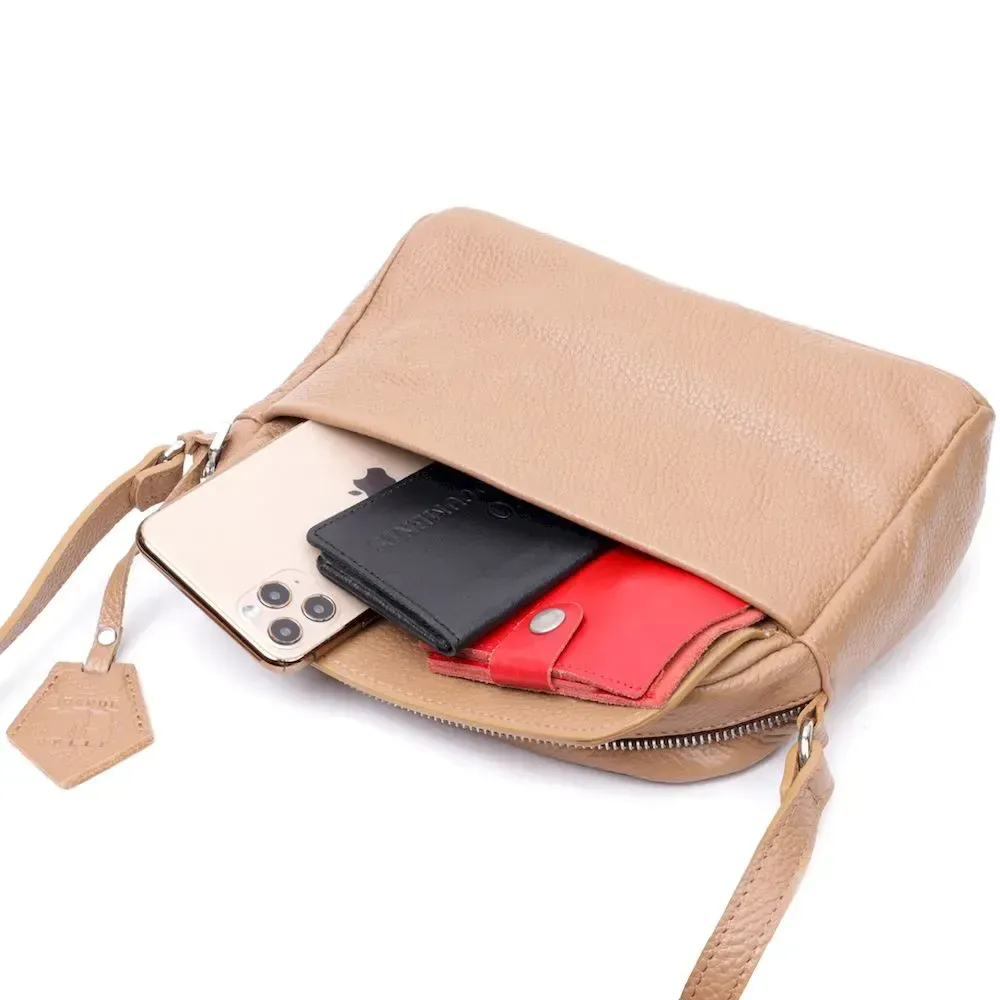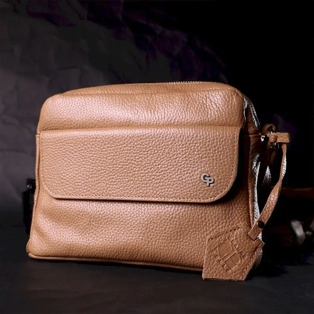 Стильная женская сумка кросс-боди из натуральной кожи GRANDE PELLE 11652 Бежевая