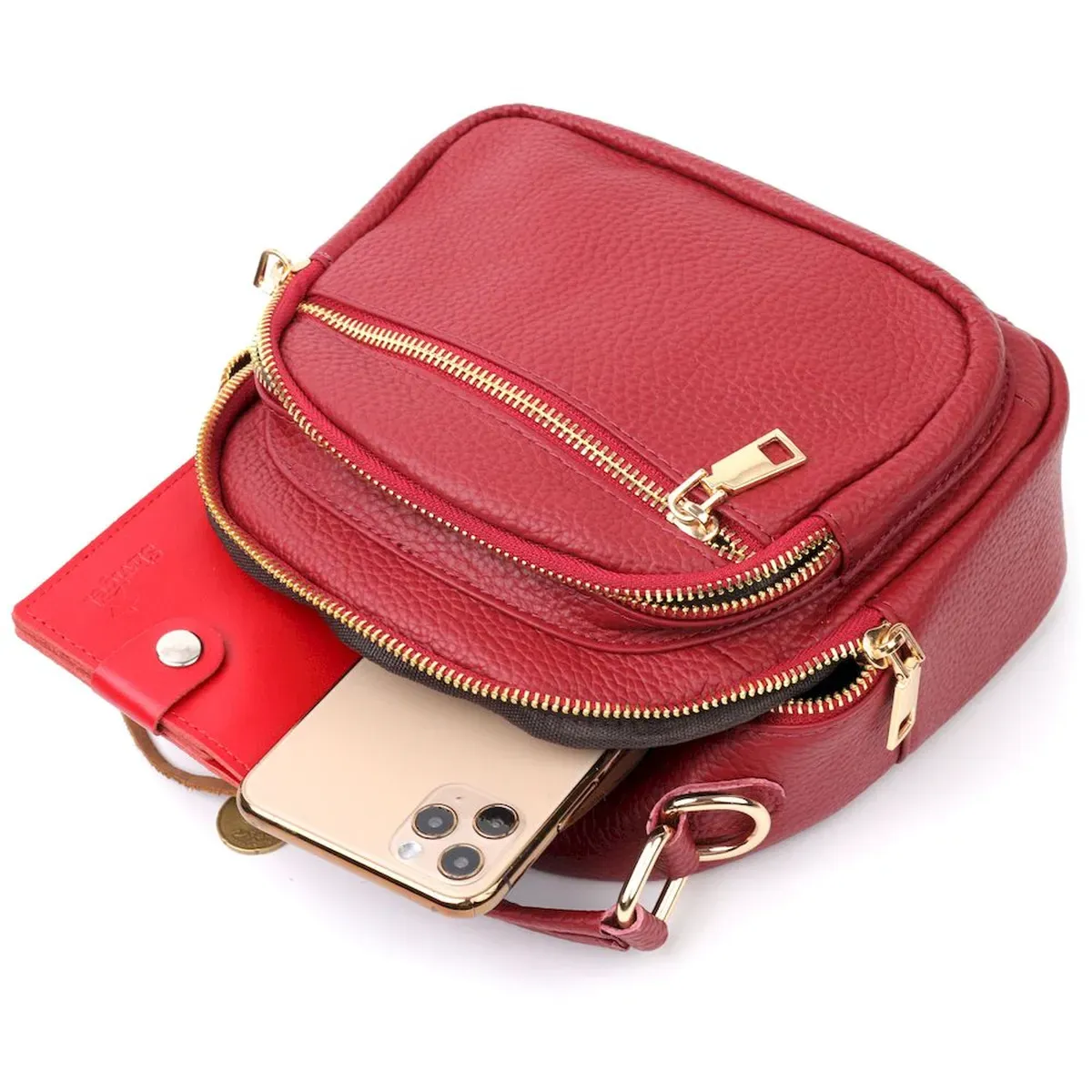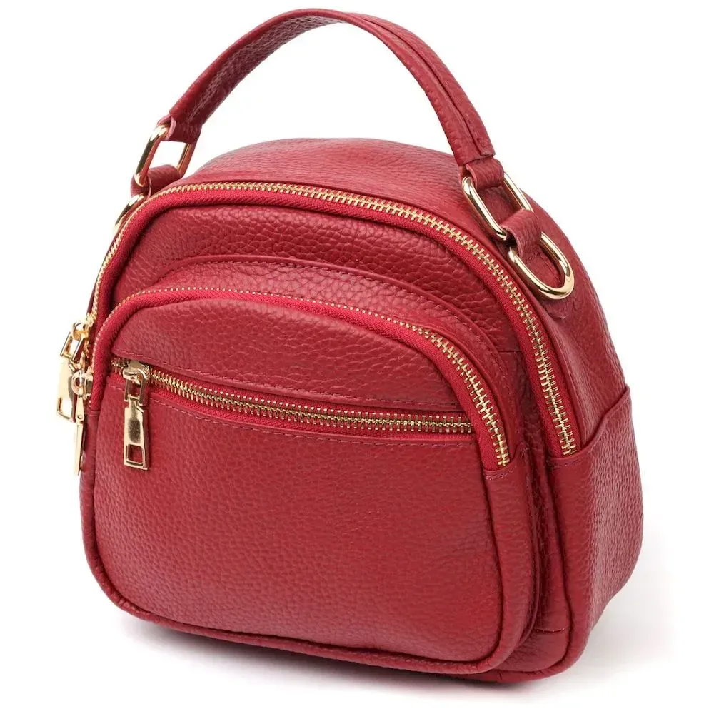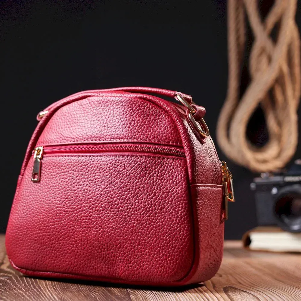 Отличная женская сумка компактного размера из натуральной кожи. Изделие очень удобное. Прекрасный вариант небольшой сумки на каждый день. Модель дополнена фурнитурой золотого цвета. Кожа мягкая и приятная на ощупь. Сумка прекрасно выносит непогоду. Внутри аксессуара прочная подкладка. В сумку с легкостью поместятся все самые необходимые вещи. С такой сумкой будет удобно ходить на работу или встречи. Сумка станет прекрасным подарком для любой женщины.