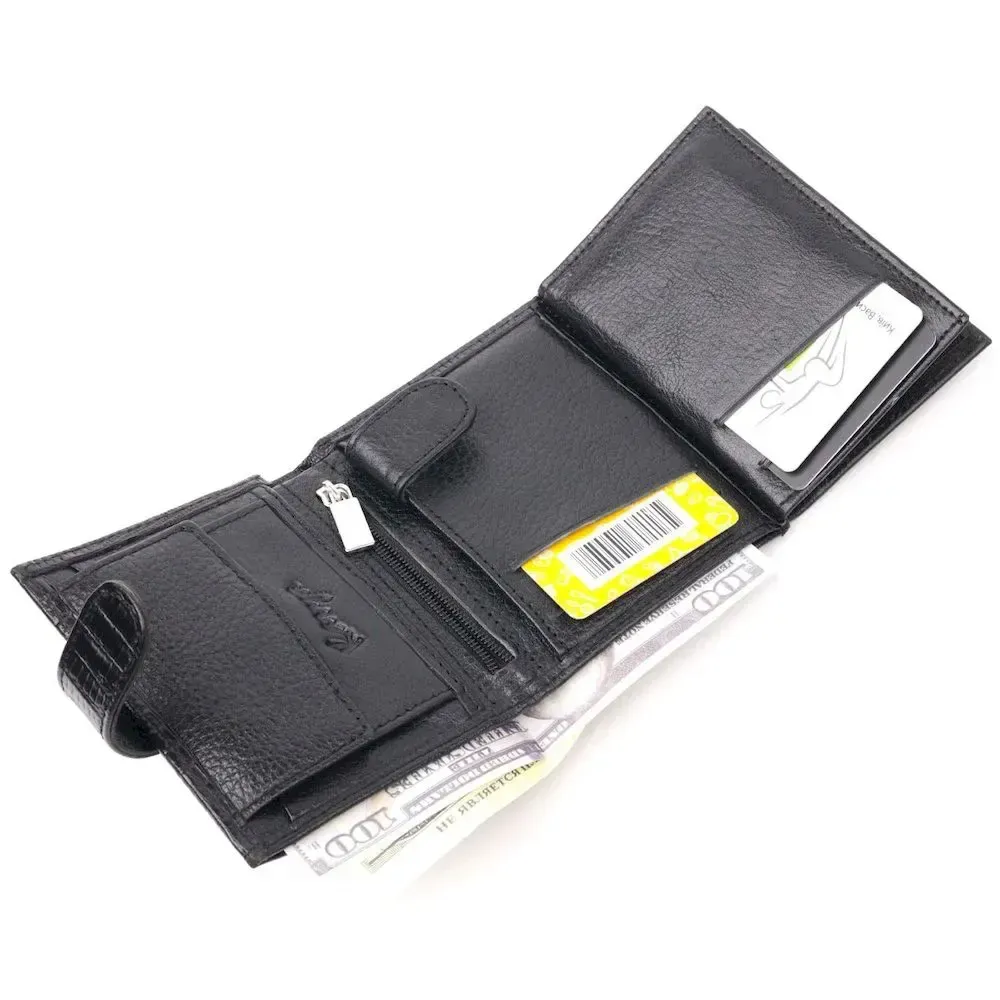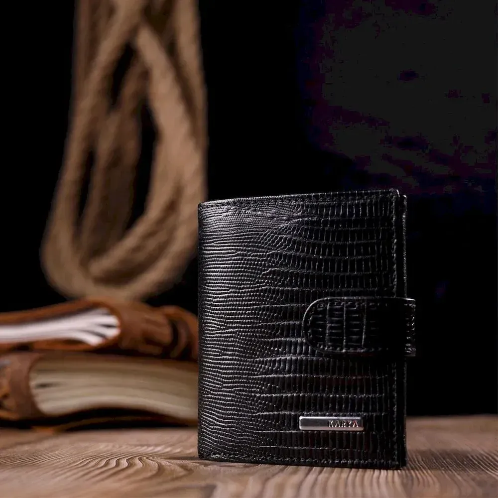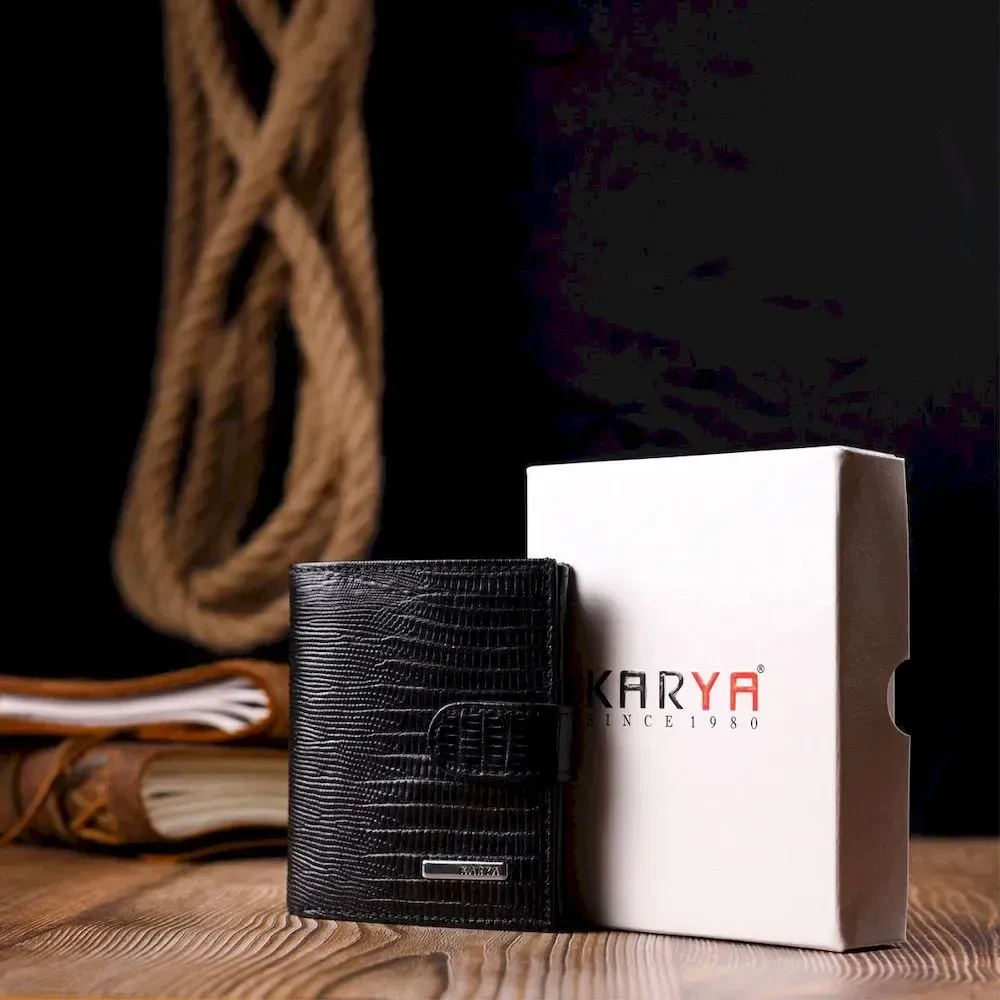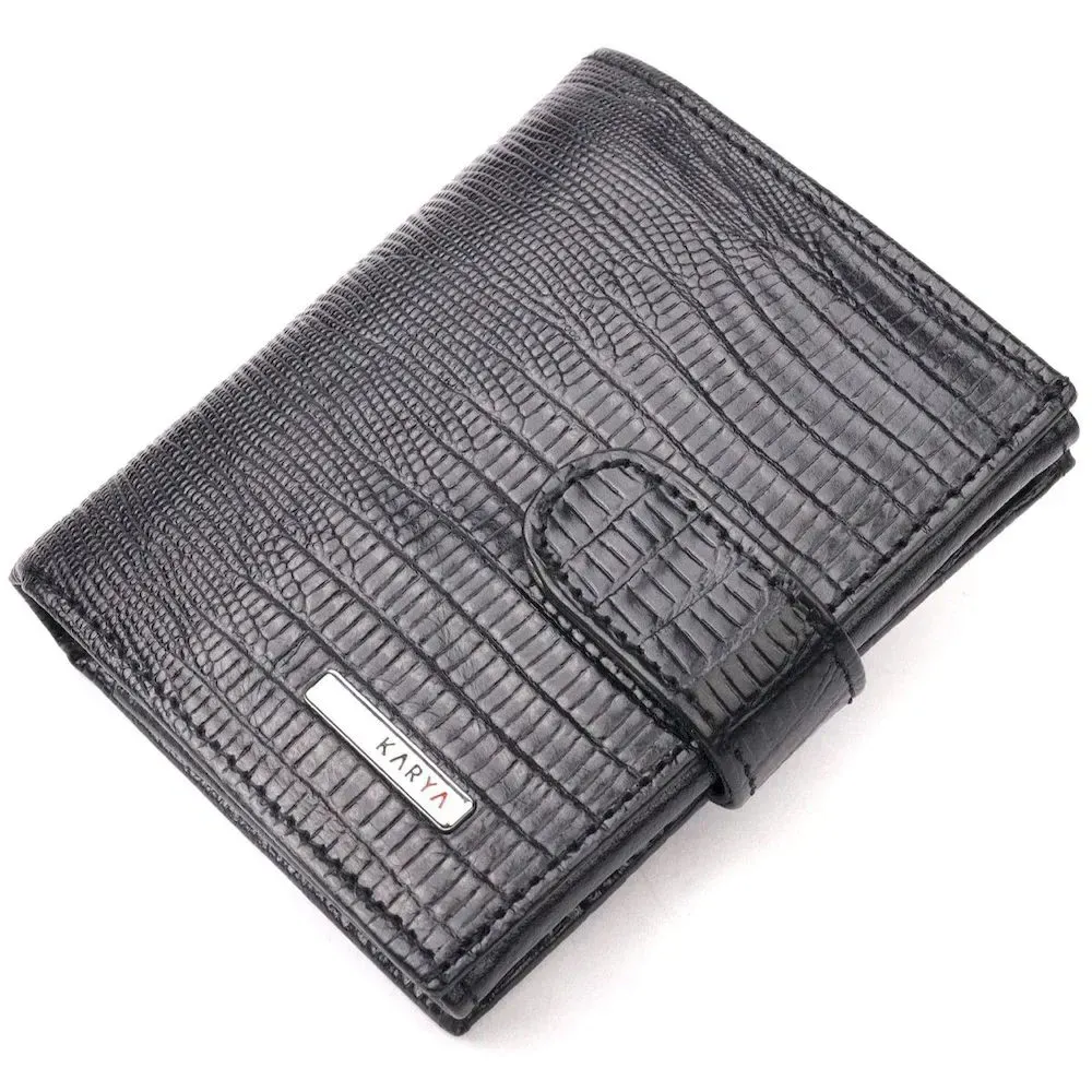 Стильное лакированное мужское портмоне из фактурной кожи KARYA 21047 Черный
