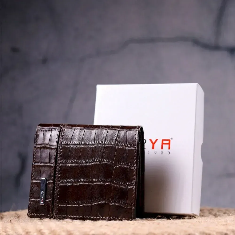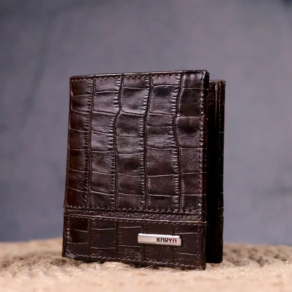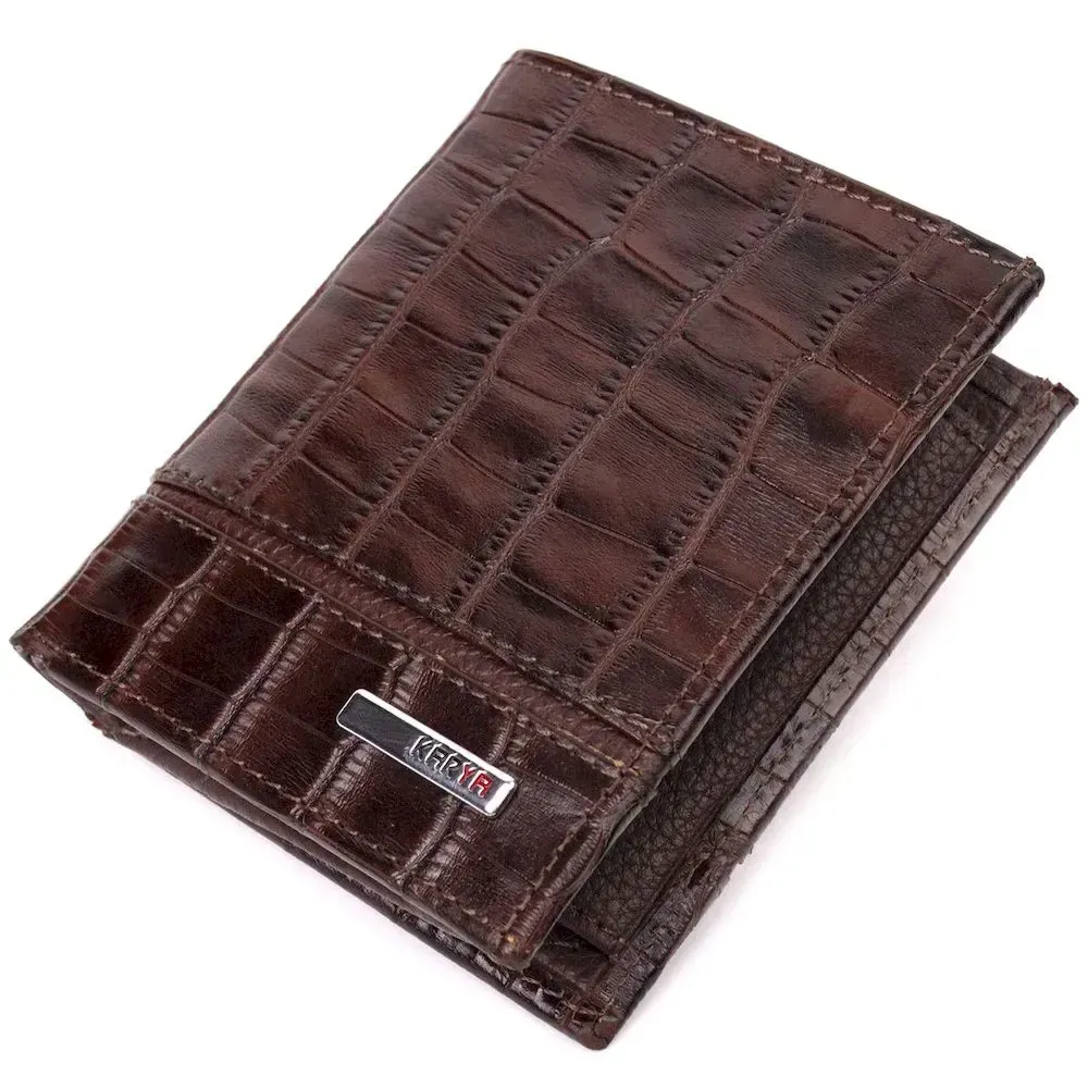 Стильное портмоне для мужчин из натуральной кожи с тиснением под крокодила KARYA 21324 Коричневый