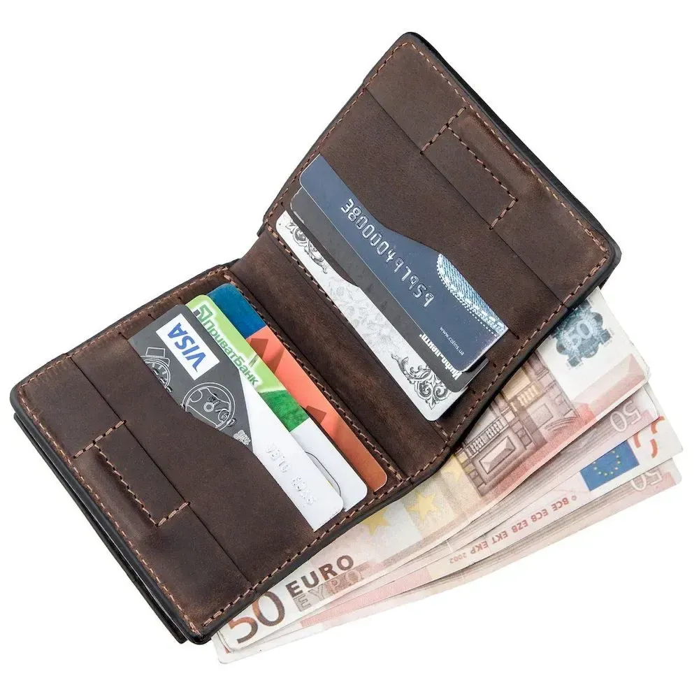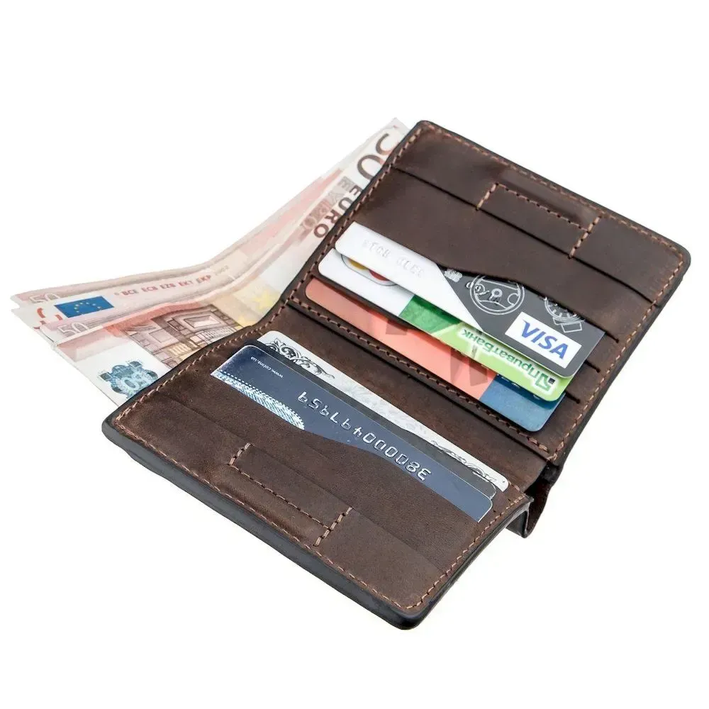 Коричневое классическое портмоне из итальянской натуральной кожи высочайшего качества. Аксессуар имеет компактный размер и выдержанный строгий дизайн. Портмоне легко поместится в карман брюк или маленькую сумку. По краям изделие прошито ровной светлой строчкой в дизайн изделия. На лицевой и тыльной стороне тисненый логотип бренда. Портмоне будет идеальным подарком для близкого человека. В комплекте идет фирменная картонная коробка.