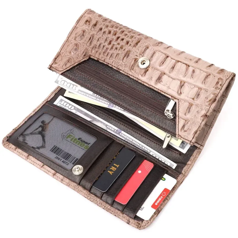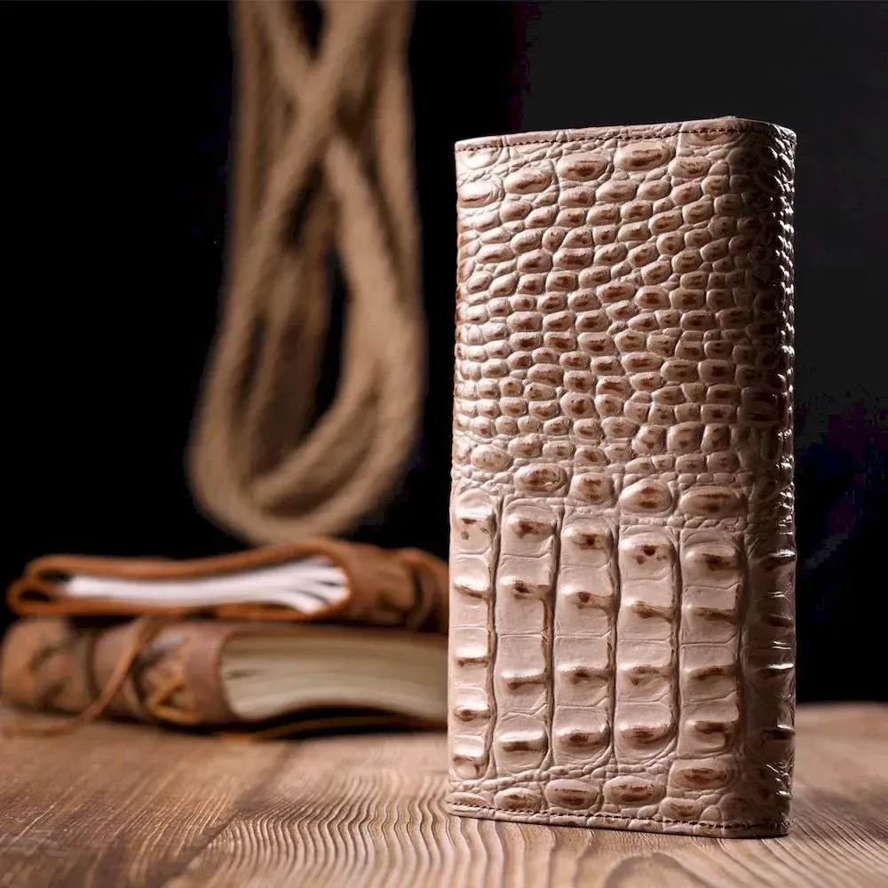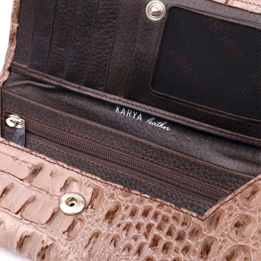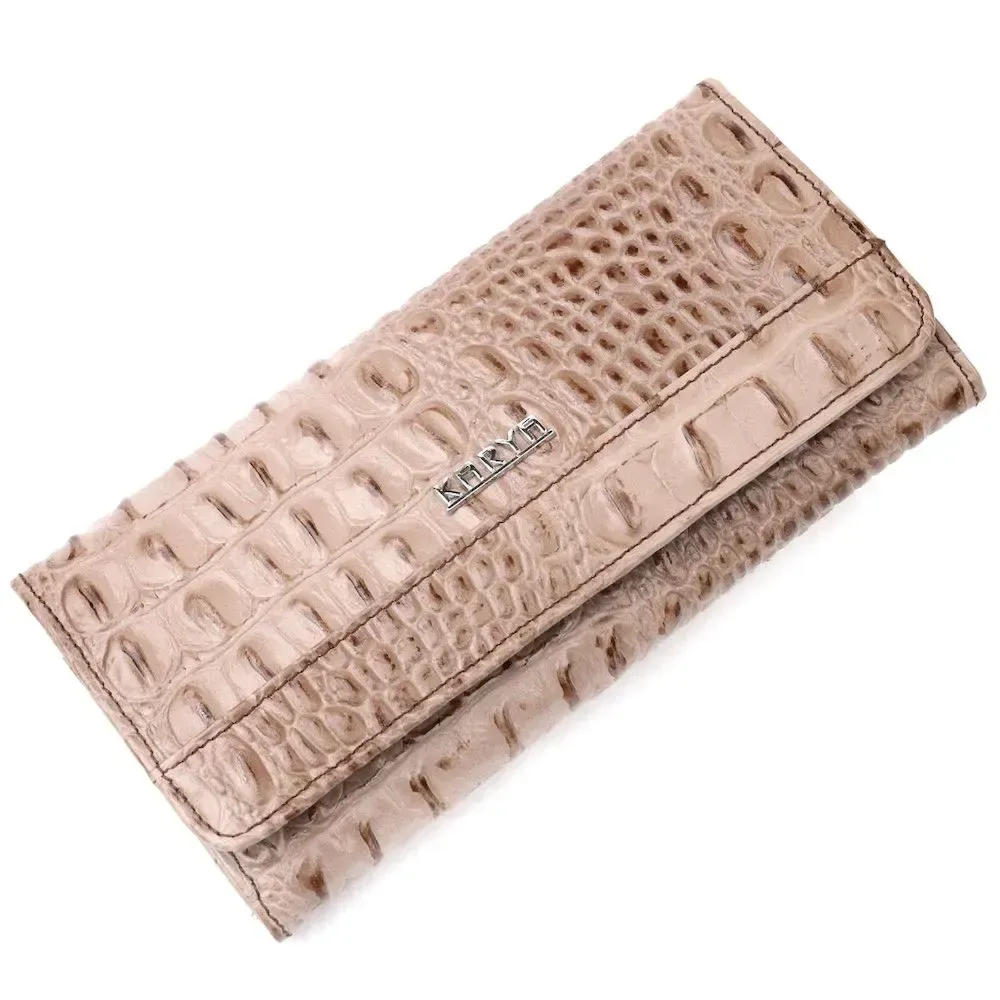 Стильный горизонтальный кошелек из натуральной кожи с тиснением под крокодила KARYA 21177 Бежевый