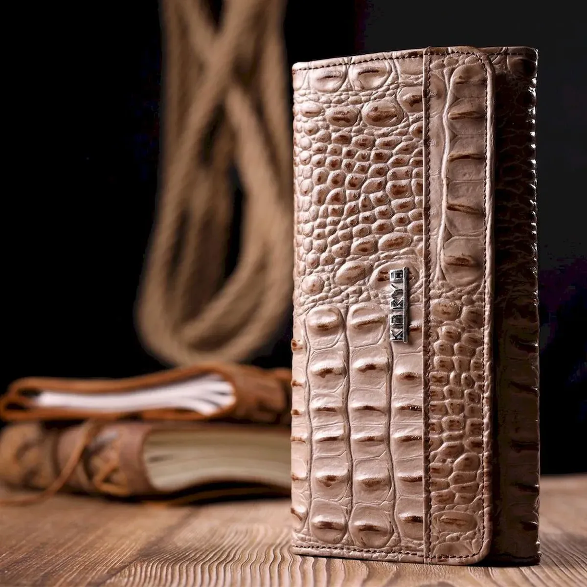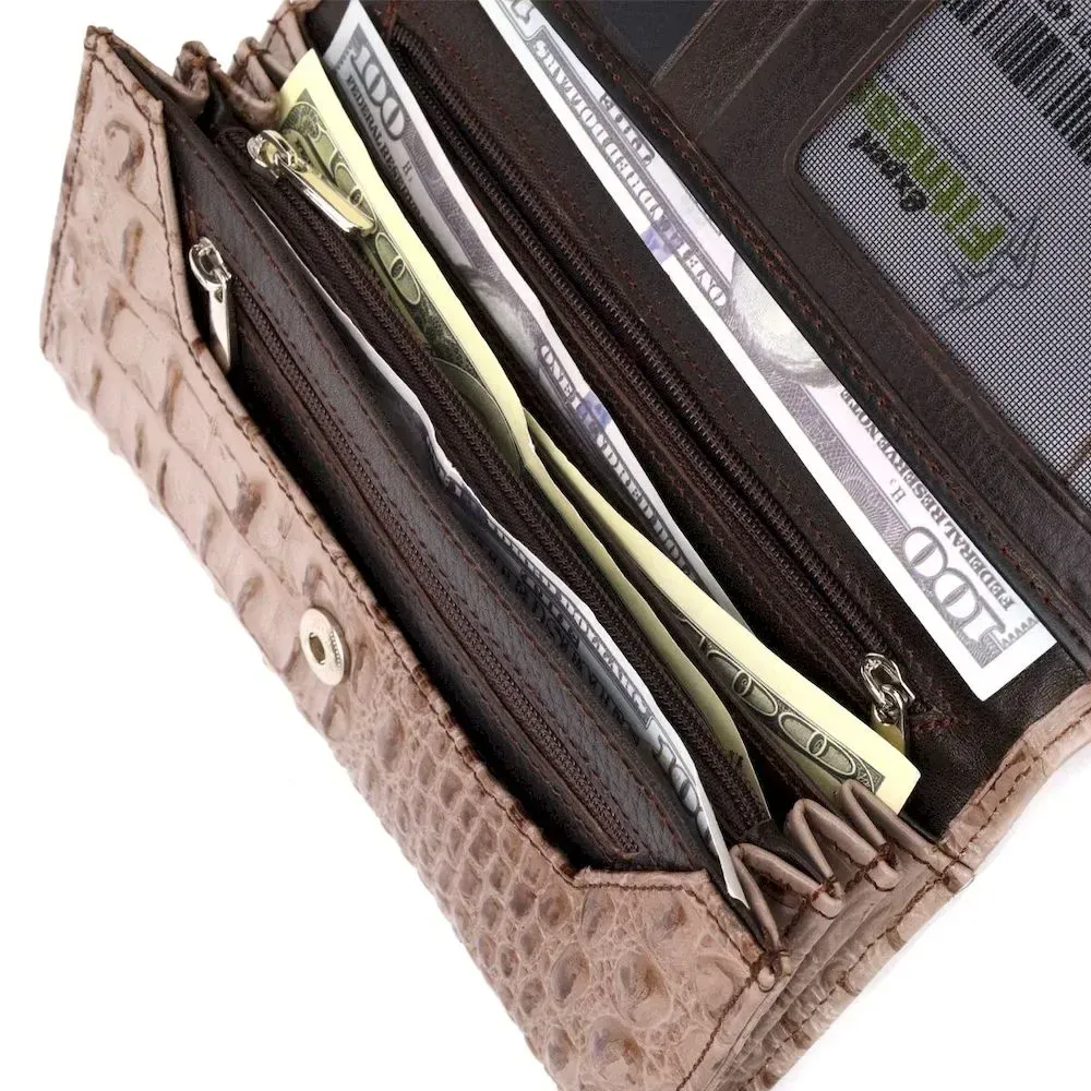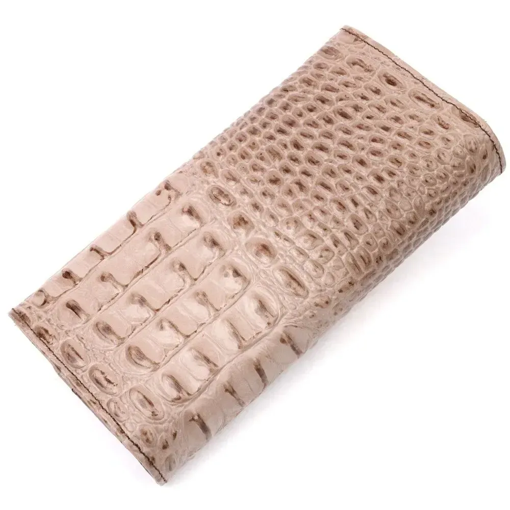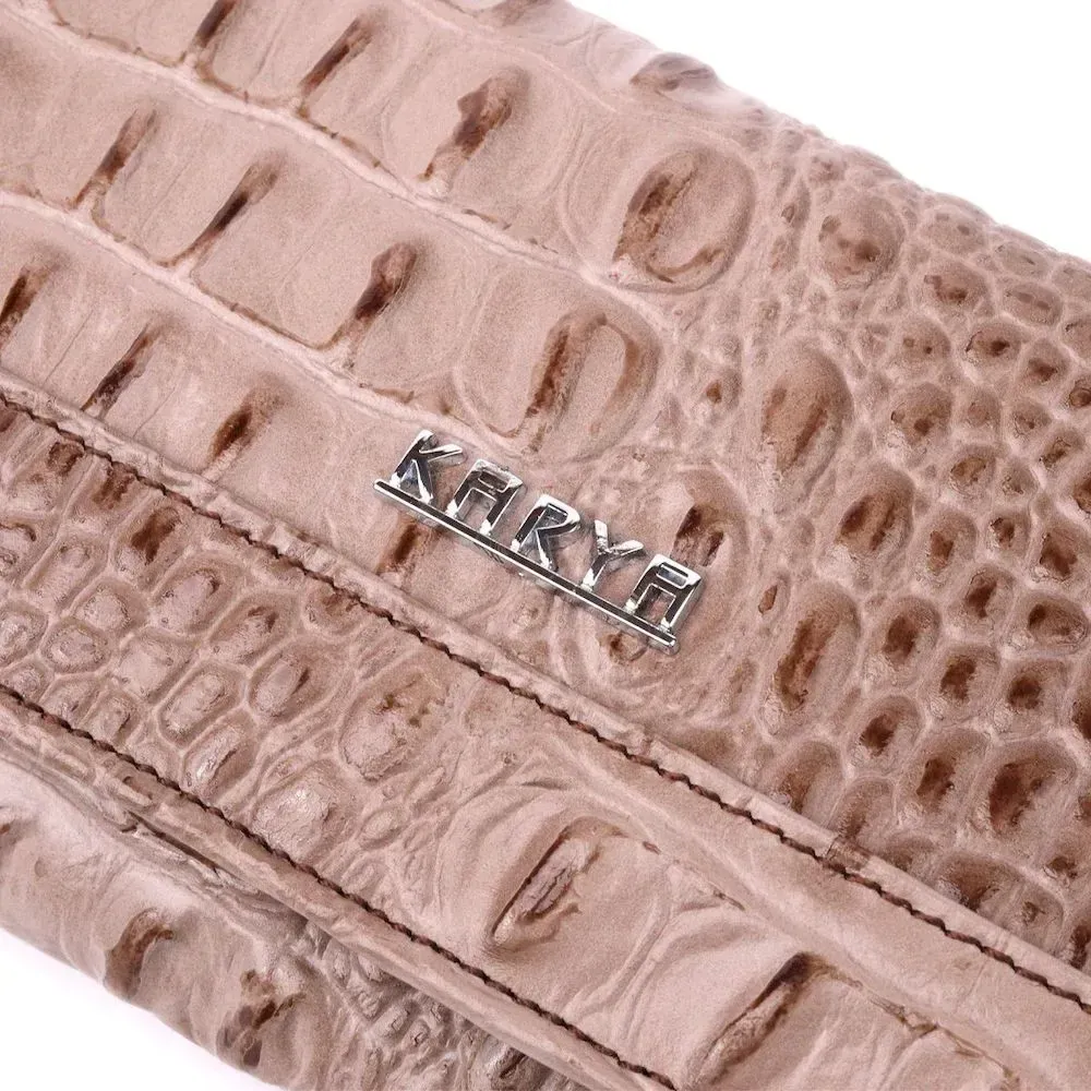 Стильный горизонтальный кошелек из натуральной кожи с тиснением под крокодила KARYA 21177 Бежевый