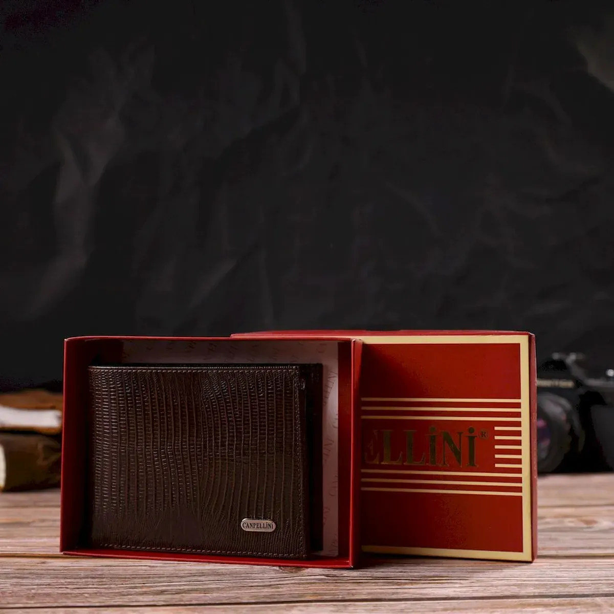 Стильный горизонтальный мужской бумажник среднего размера из натуральной фактурной кожи CANPELLINI 21864 Коричневый