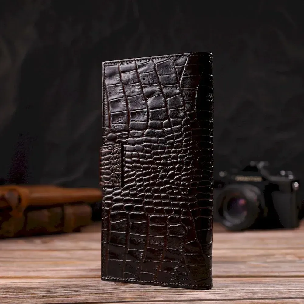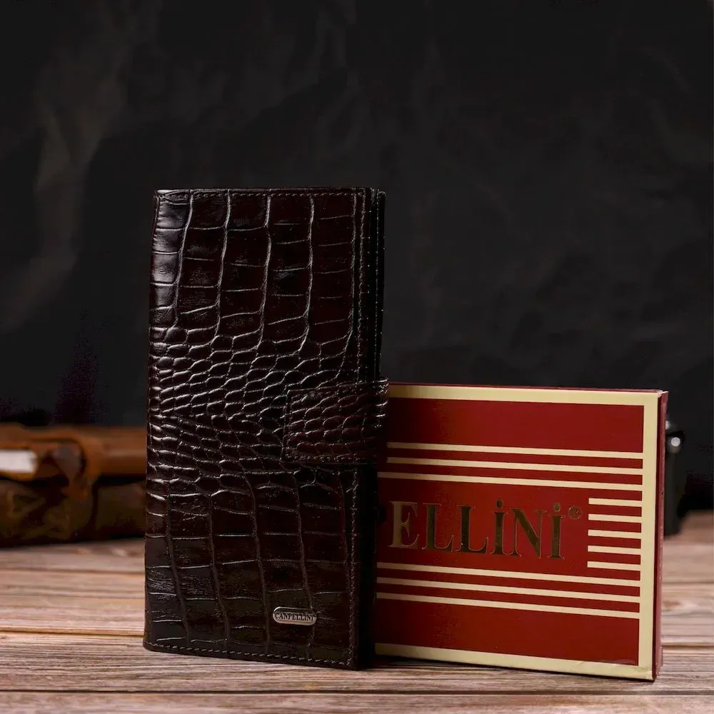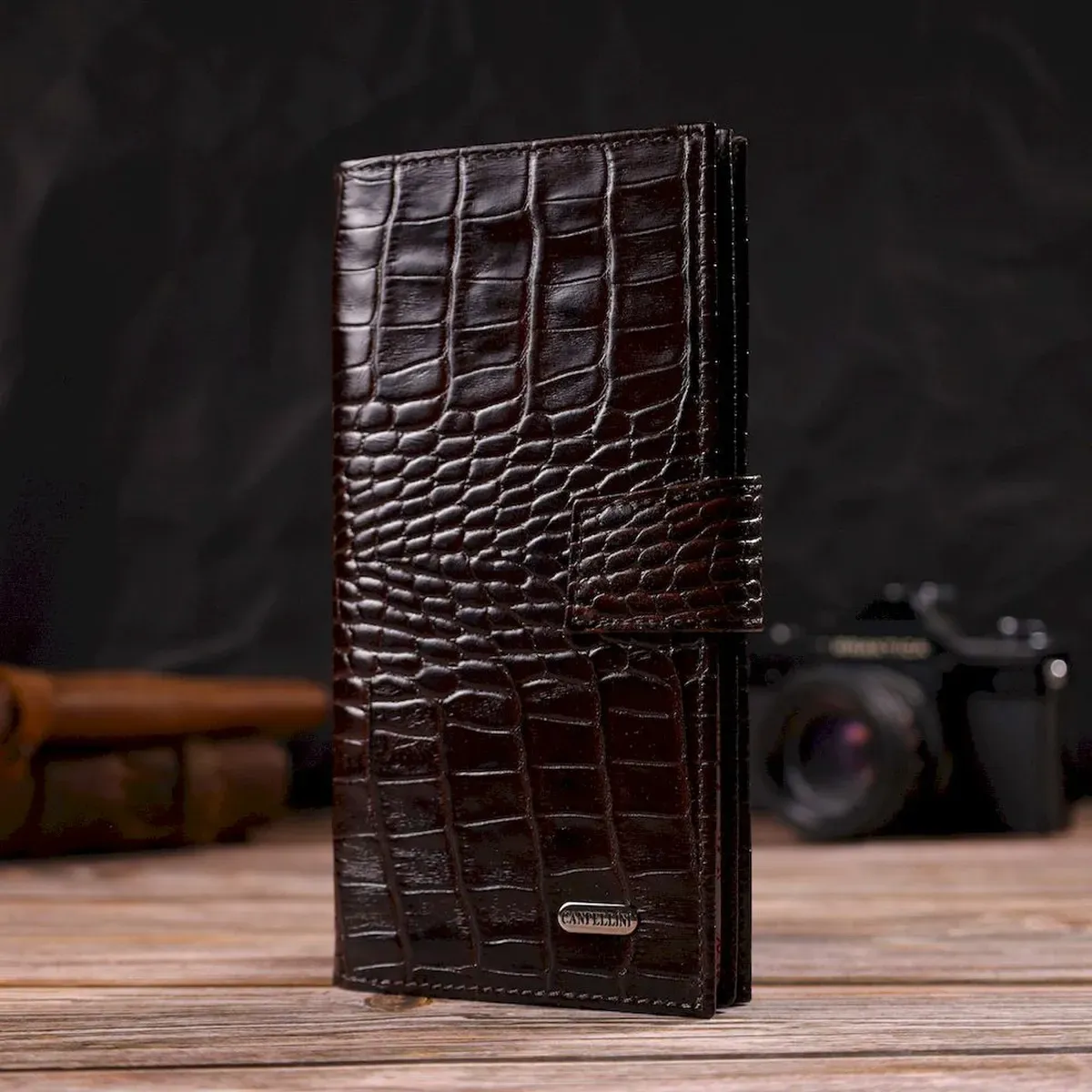 Стильный кошелек для мужчин из натуральной кожи с тиснением под крокодила CANPELLINI 21915 Коричневый