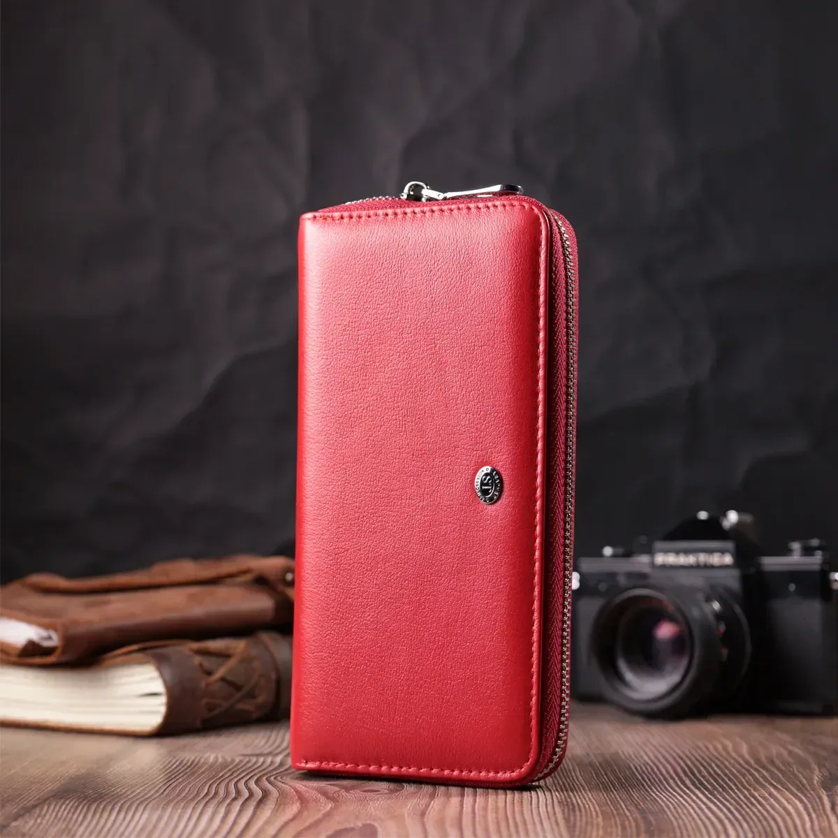 Стильный кошелек-клатч для женщин на одно отделение из натуральной кожи ST Leather 22561 Красный