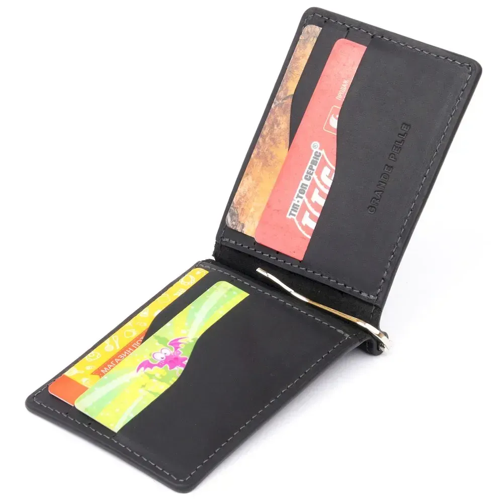 Стильный зажим для денег без застежки GRANDE PELLE 11294 Черный
