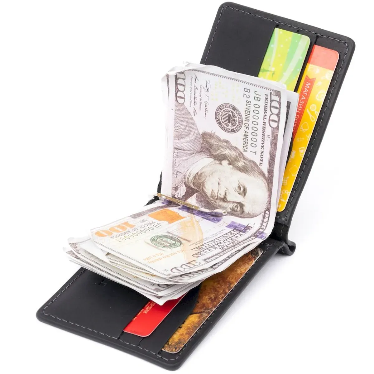 Идеальный и стильный зажим как для мужчины, так и женщины. Сам механизм металлический и прослужит вам значительно дольше. В зажим поместится достаточно большая пачка купюр. Рекомендуем зажим, если вы поклонник минималистичных аксессуаров. На лицевой стороне аксессуара тисненый логотип бренда. По краям модели ровная строчка в дизайн изделия. Внутри - несколько слотов для ваших кредиток или документов (ид-карты, прав). Аксессуар будет полезным подарком для близкого человека. Зажим упакован в войлочный стильный чехол.