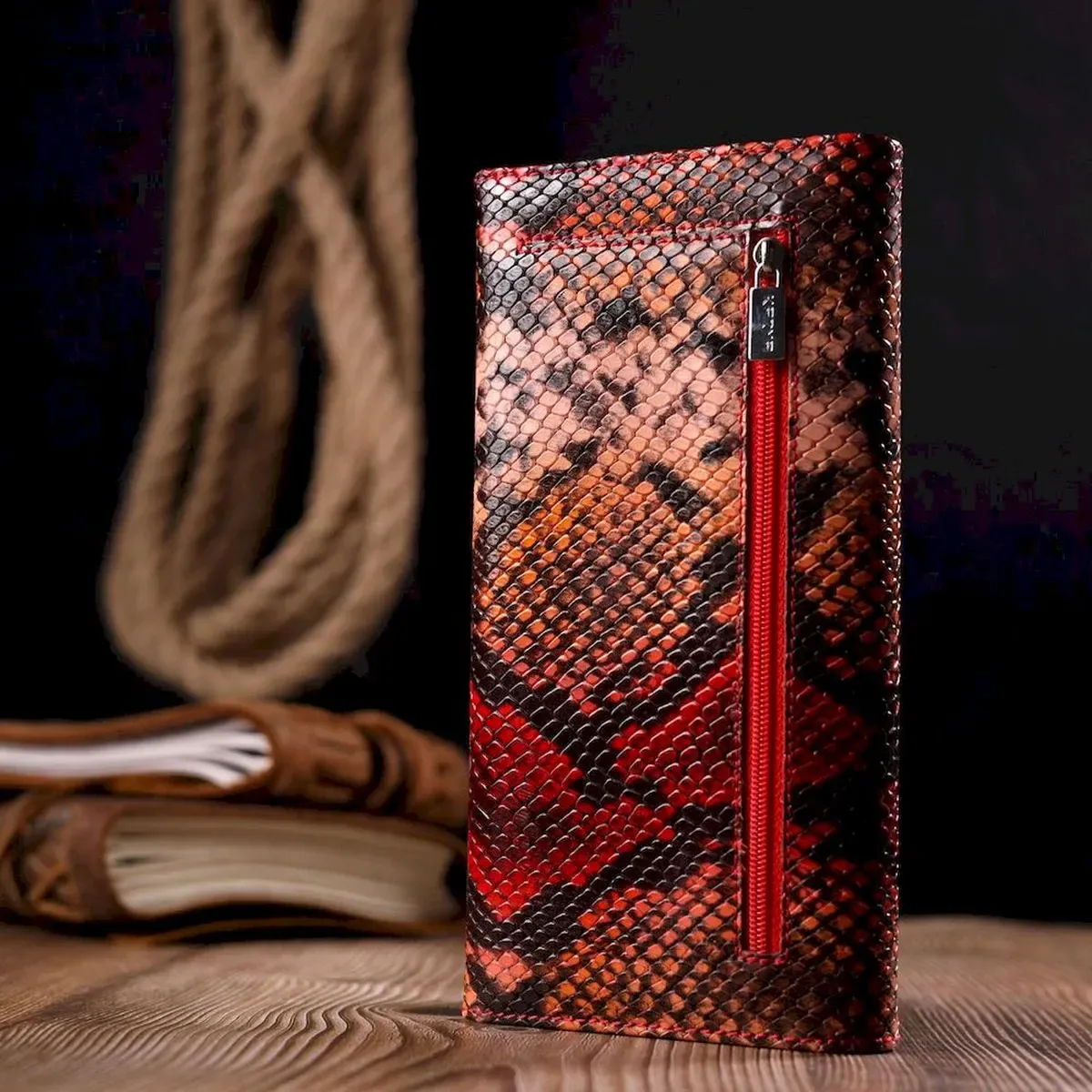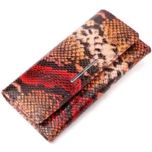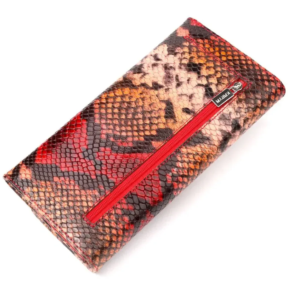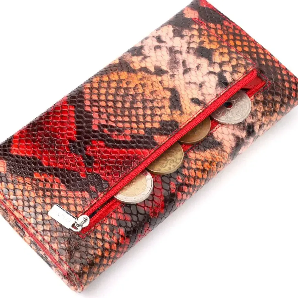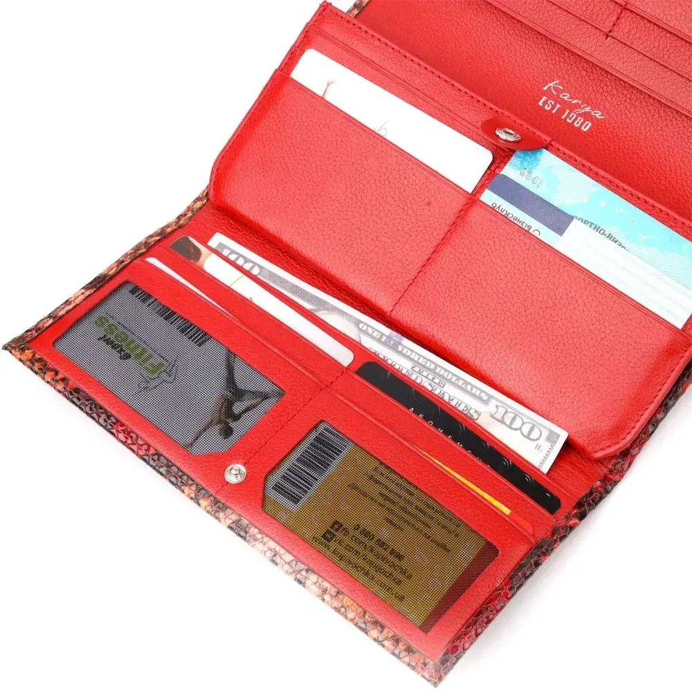 Стильный женский кошелек из натуральной фактурной кожи под змею KARYA 21010 Красный