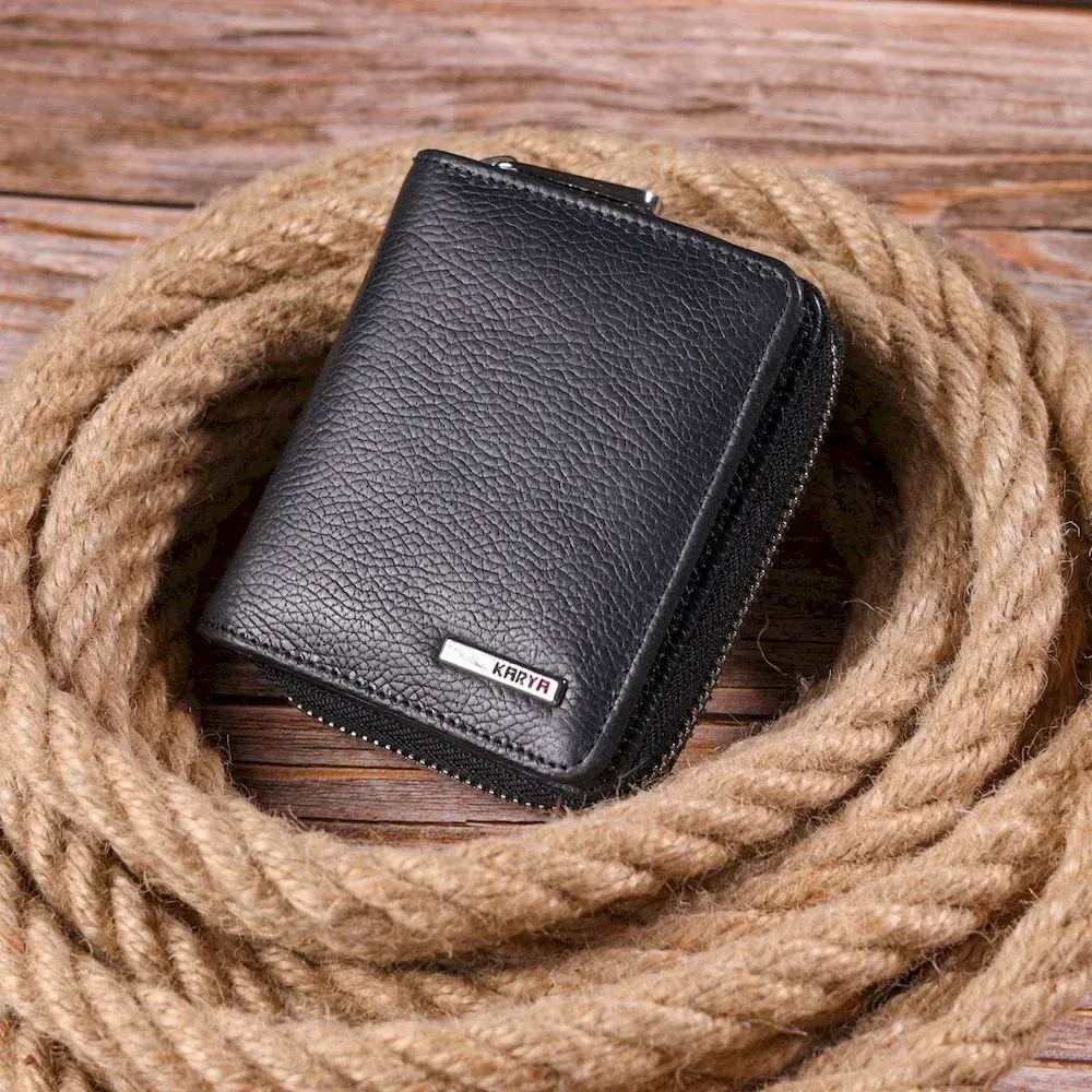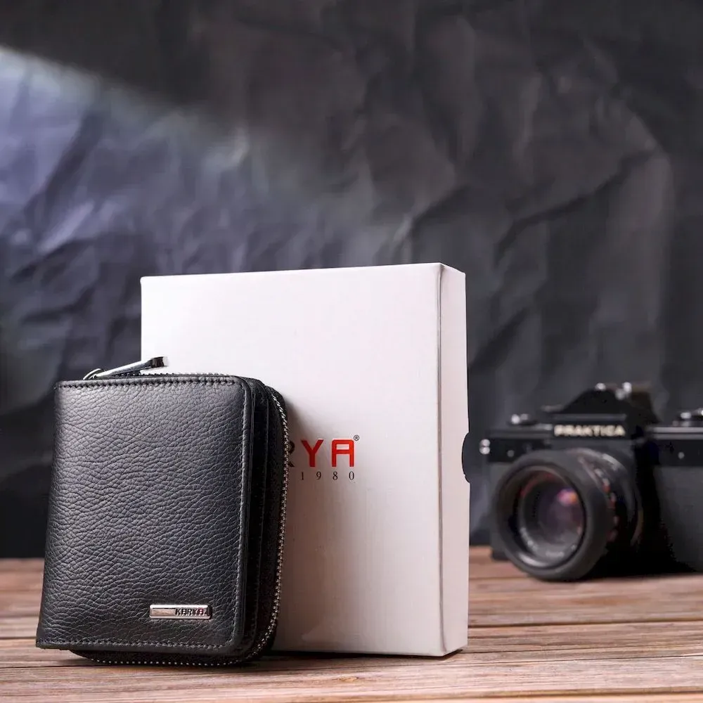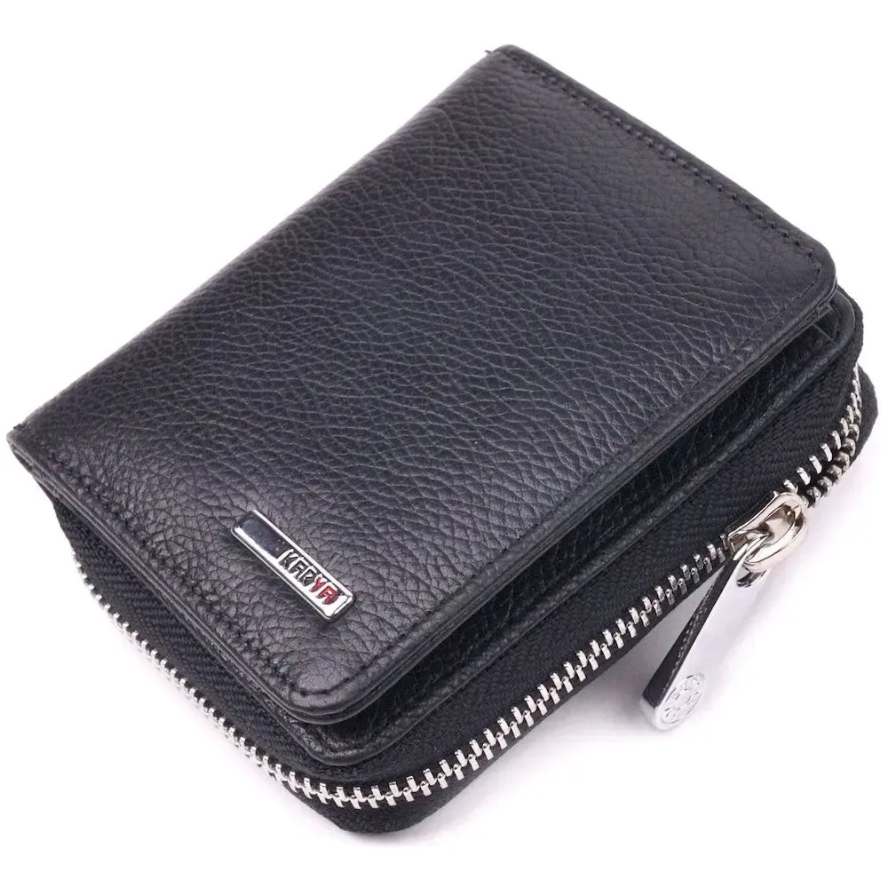 Стильный женский кошелек с монетницей на молнии из натуральной кожи KARYA 21408 Черный
