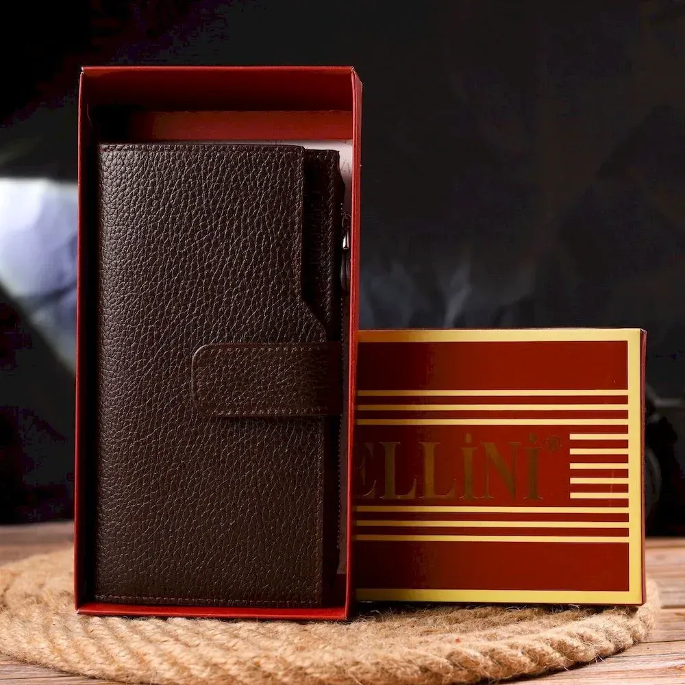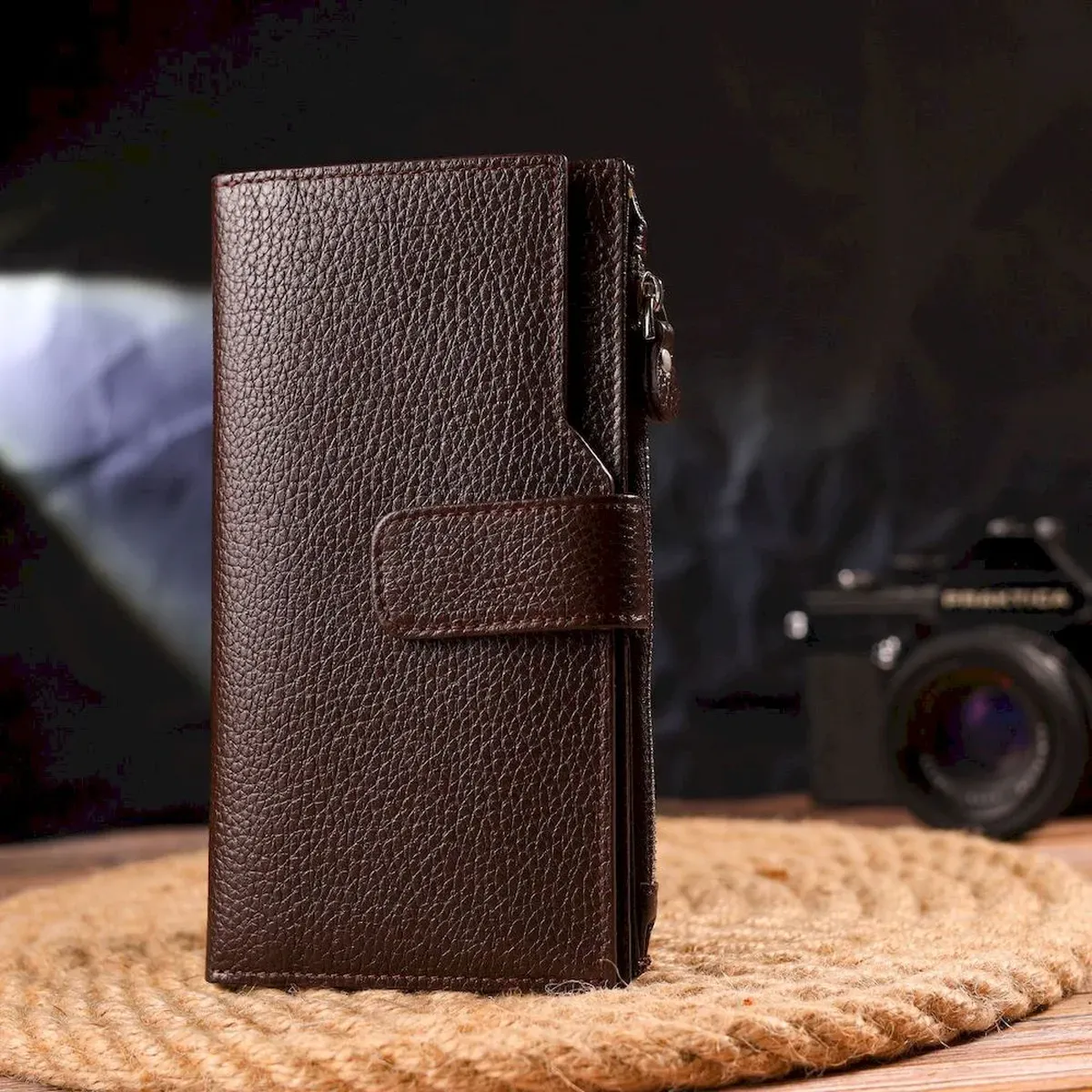 Стильный женский вертикальный кошелек из натуральной кожи CANPELLINI 21642 Коричневый