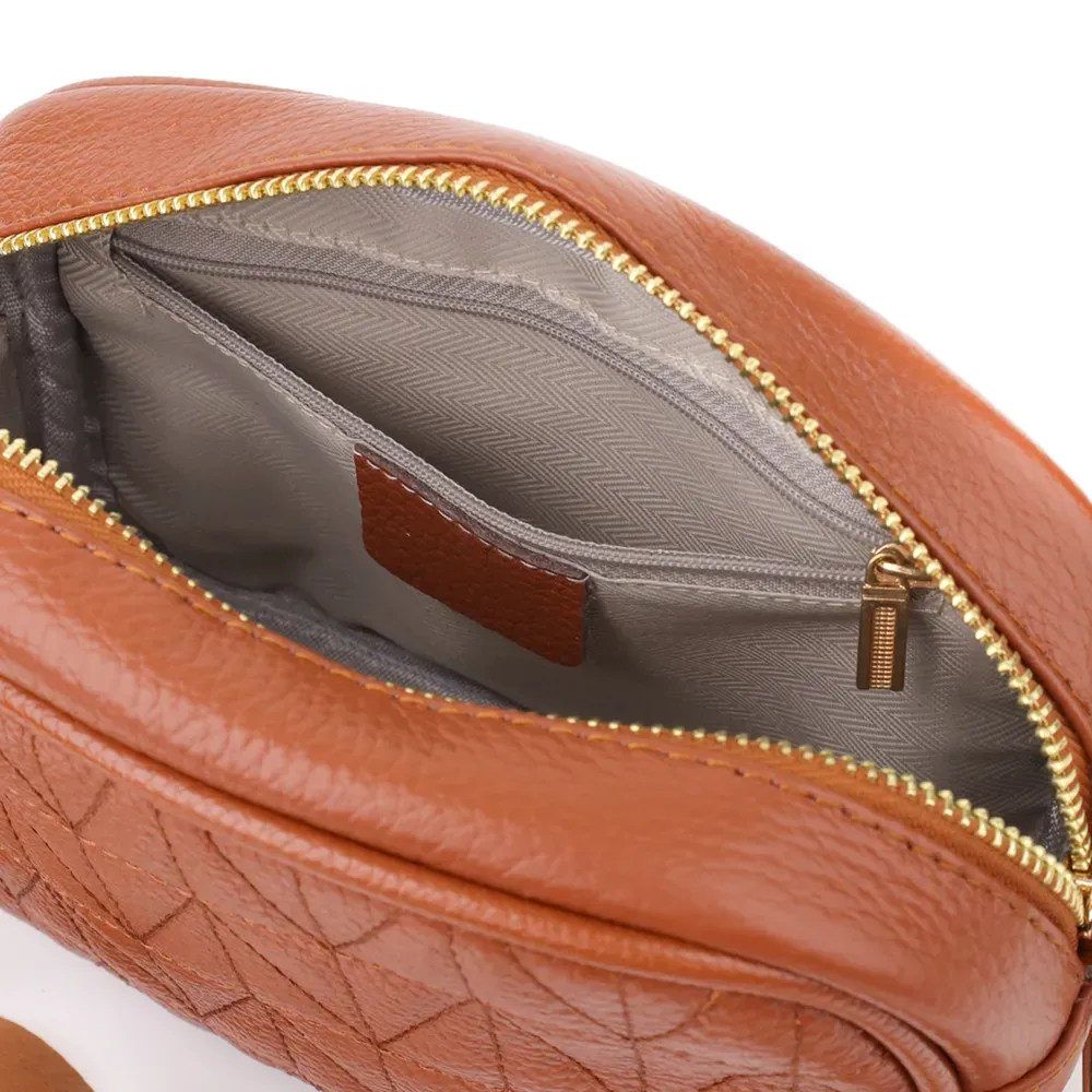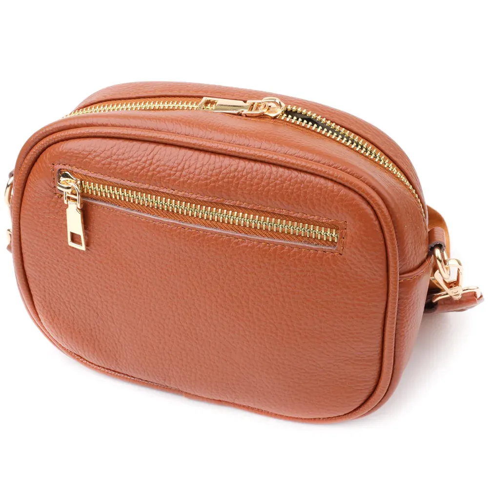Елегантна руда стьобана сумка Vintage із натуральної шкіри стане стильним акцентом у вашому гардеробі, додаючи образу тепла та вишуканості. Компактна форма підкреслює акуратний силует, а стібка на лицьовій стороні надає аксесуару особливої чарівності. Сумка закривається на блискавку, всередині розташоване основне відділення з кишенею на блискавці та відкритою кишенею для дрібниць, а на тильній стороні знаходиться зовнішня кишеня на блискавці, яка робить використання ще зручнішим. Знімний текстильний ремінь, що регулюється, забезпечує комфорт при носінні, а фурнітура під жовте золото стильно відтінює насичений рудий колір шкіри. Ця модель легко підходить як для повсякденних образів, так і для особливих випадків, підкреслюючи жіночність та витончений смак своєї власниці.