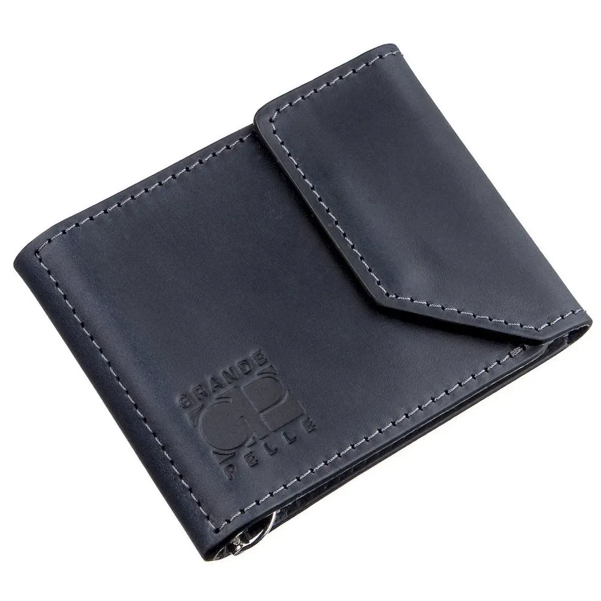 Строгий зажим из натуральной кожи GRANDE PELLE 11202 Синий
