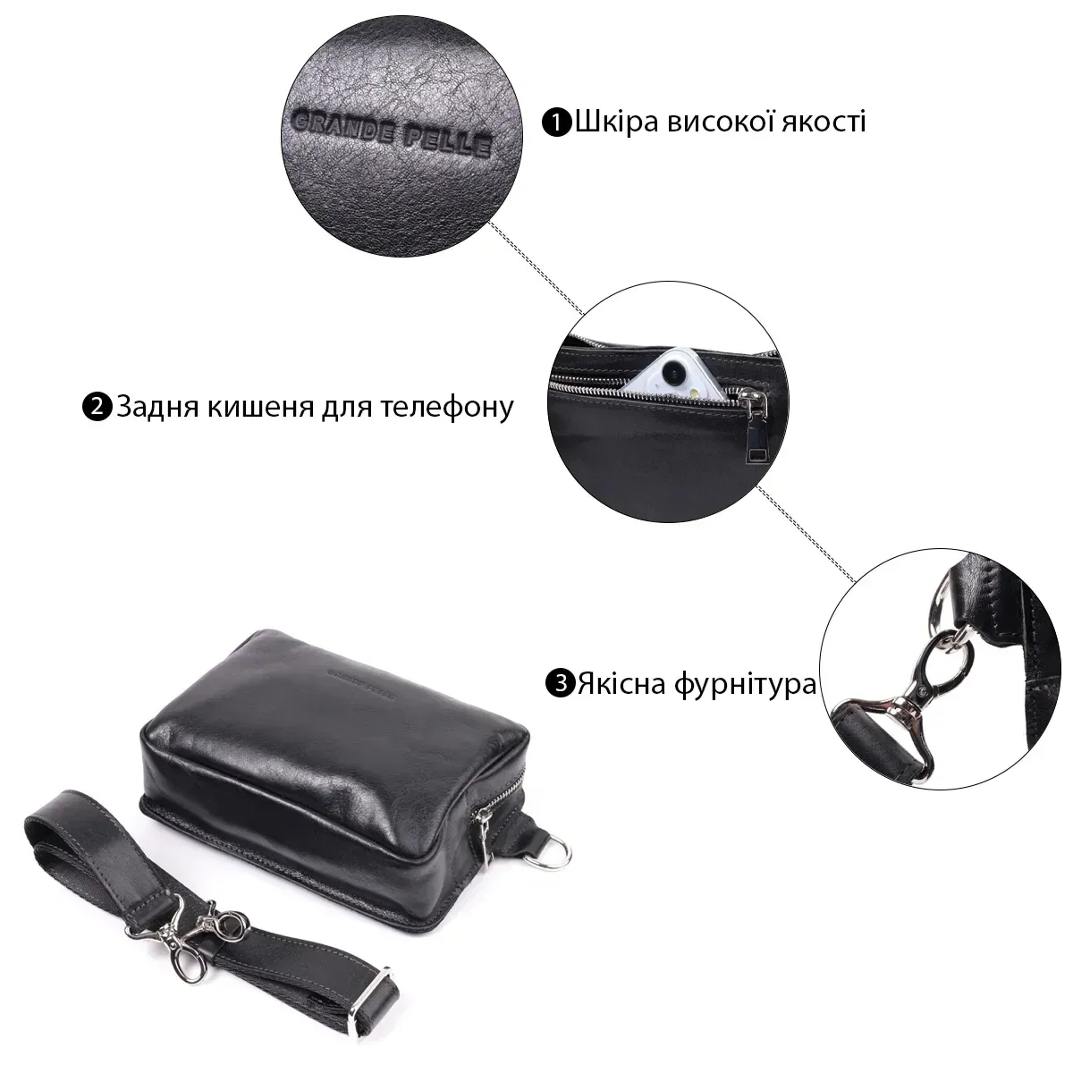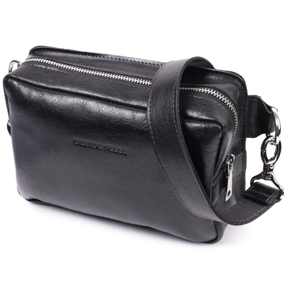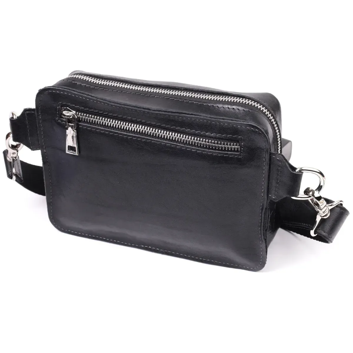 Сумка бананка прямоугольного формата из качественной натуральной кожи GRANDE PELLE 22576 Черный