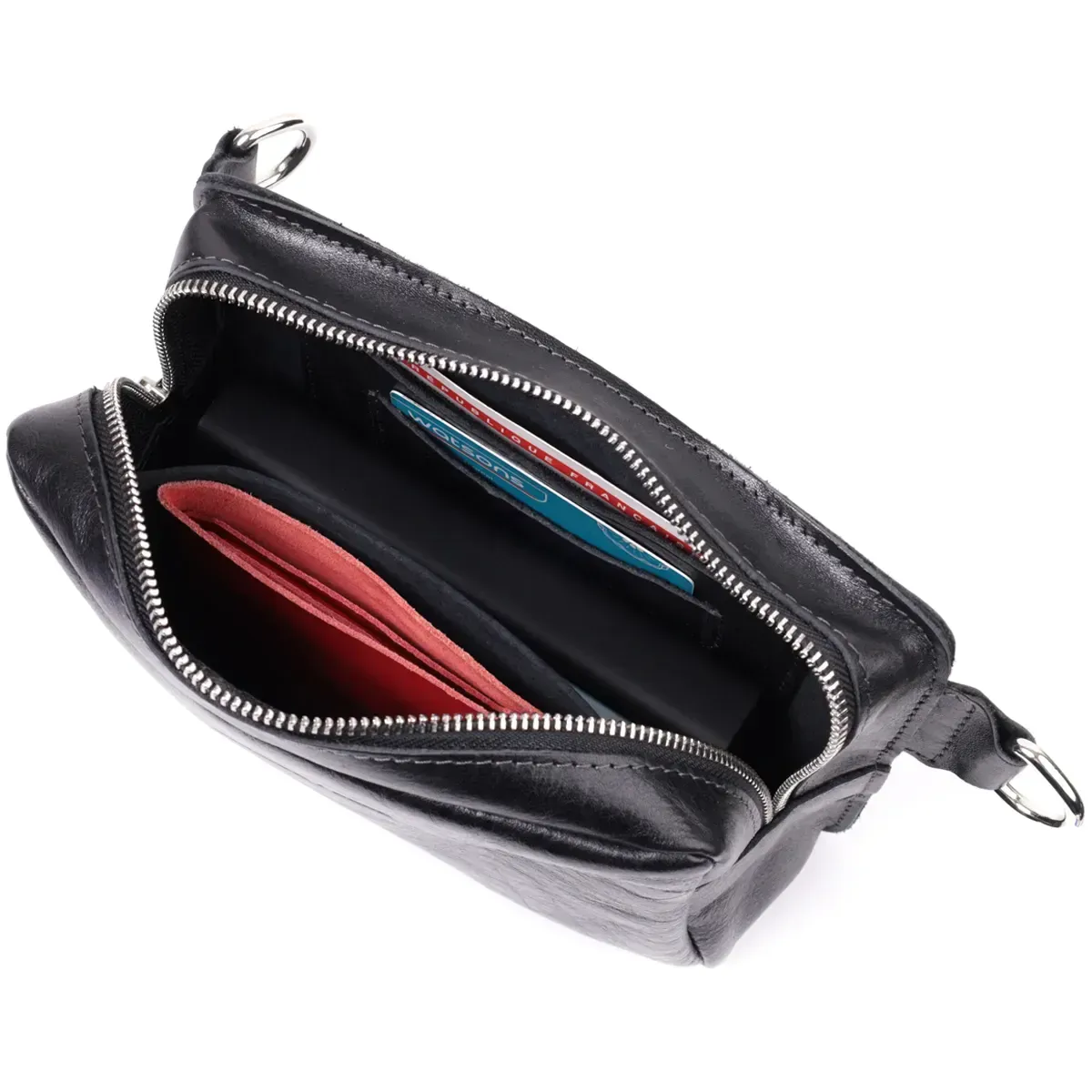 - внутри: три кожаные кармана открытого типа, разных размеров;