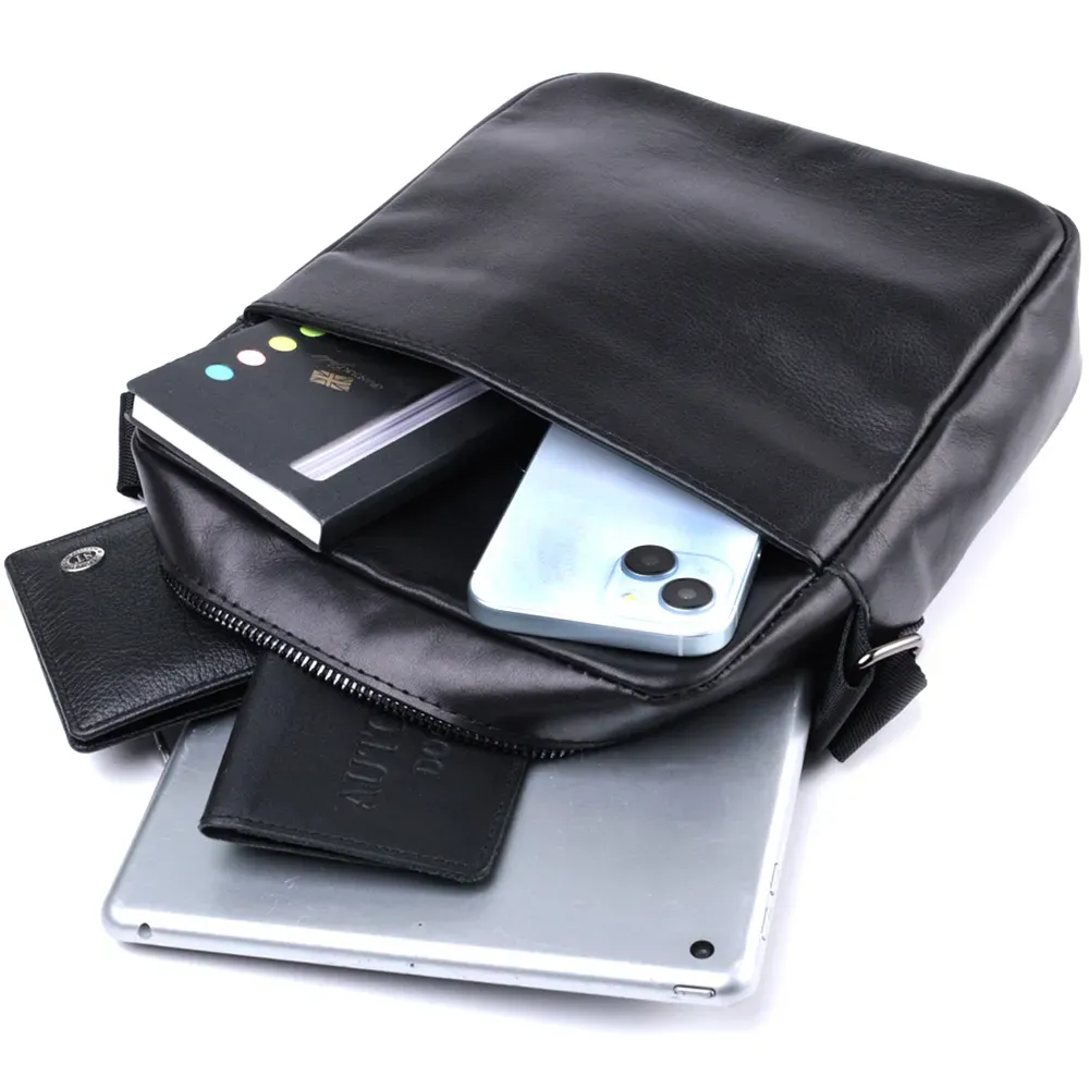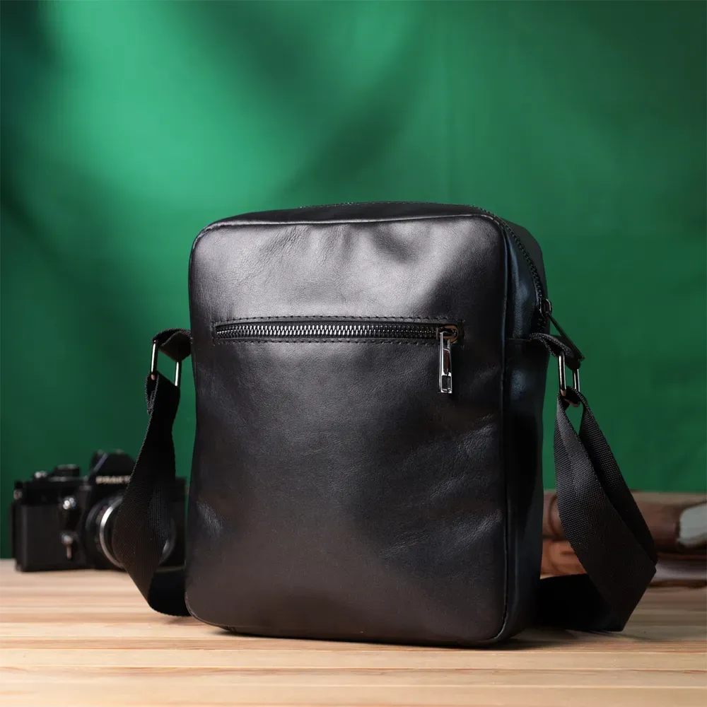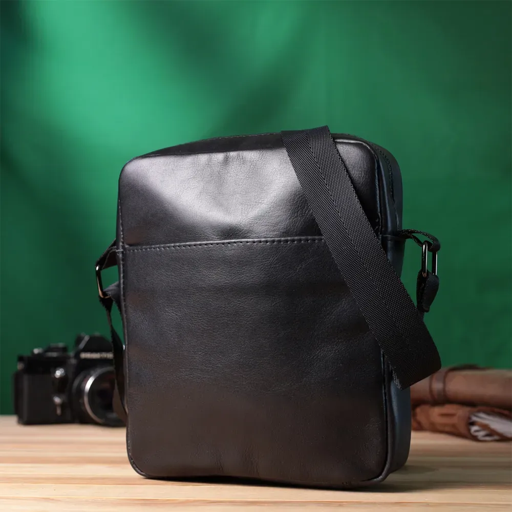 Сумка для чоловіків через плече із глянсової натуральної шкіри Shvigel 22849 Чорна