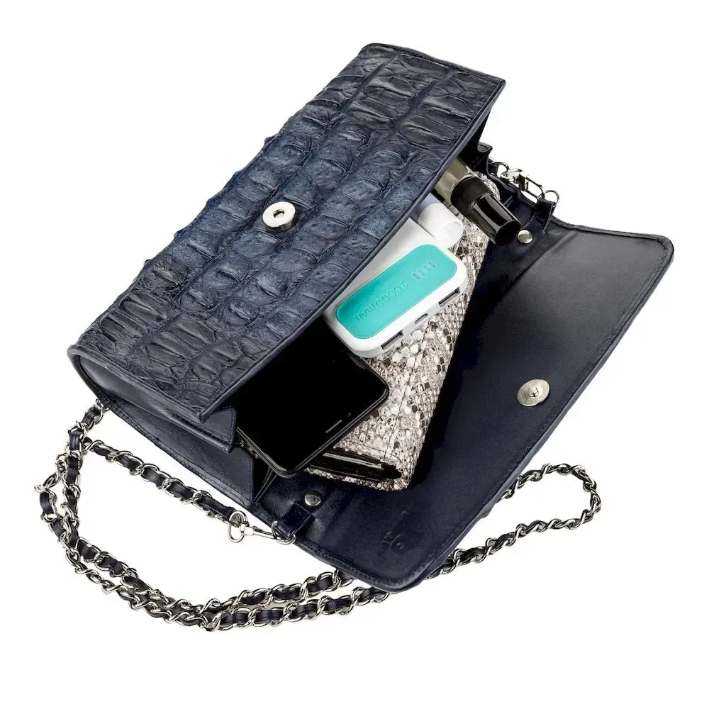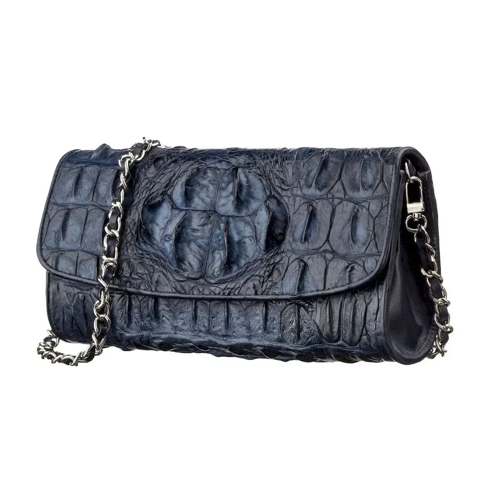 Сумка клатч CROCODILE LEATHER 18248 из натуральной кожи крокодила Синяя