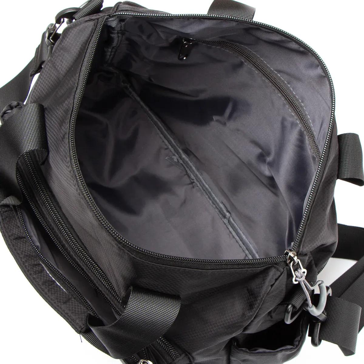 Мужская дорожная/спортивная сумка Lanpad. Одно отделение, закрывается на молнию. Внутри отделения есть карман на молнии и открытый карман. На фасаде находится два вместительных кармана на молнии, а на обратной стороне расположен один большой карман на молнии. На торцах сумки расположены открытые карманы. Регулируемый плечевой ремень, шириной 4см.