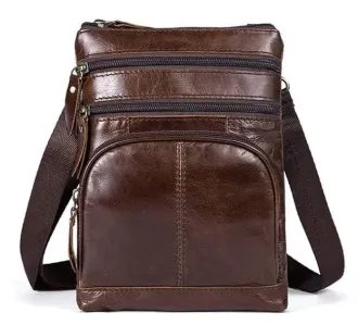 Солидная сумка для мужчин из натуральной кожи высокого качества. Преимуществами такой сумки есть: небольшой размер и объем, высочайшее качества пошива. Аксессуар дополнен фурнитурой золотистого цвета. Будет прекрасным подарком для близкого человека.