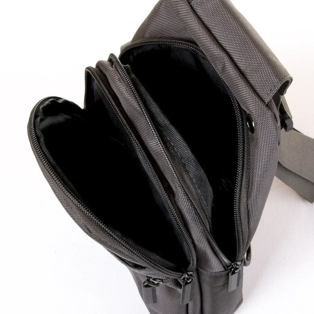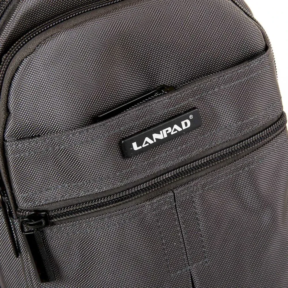 Мужская сумка Lanpad. Два отделения, закрываются на молнию. Внутри одного отделения есть карман на молнии, а во втором открытый карман. На фасаде и обратной стороне есть карманы на молнии. Регулируемый ремень, шириной 4см. Можно переставлять на левую/правую сторону.