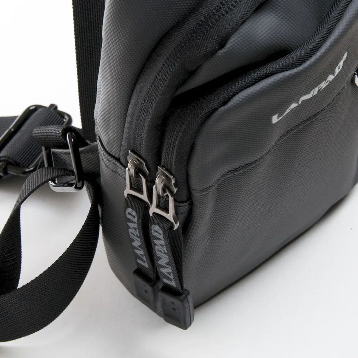 Мужская сумка Lanpad. Два отделения, закрываются на молнию. Внутри одного отделения есть открытый карман. На обратной стороне находится открытый карман. Регулируемый ремень, шириной 3см.