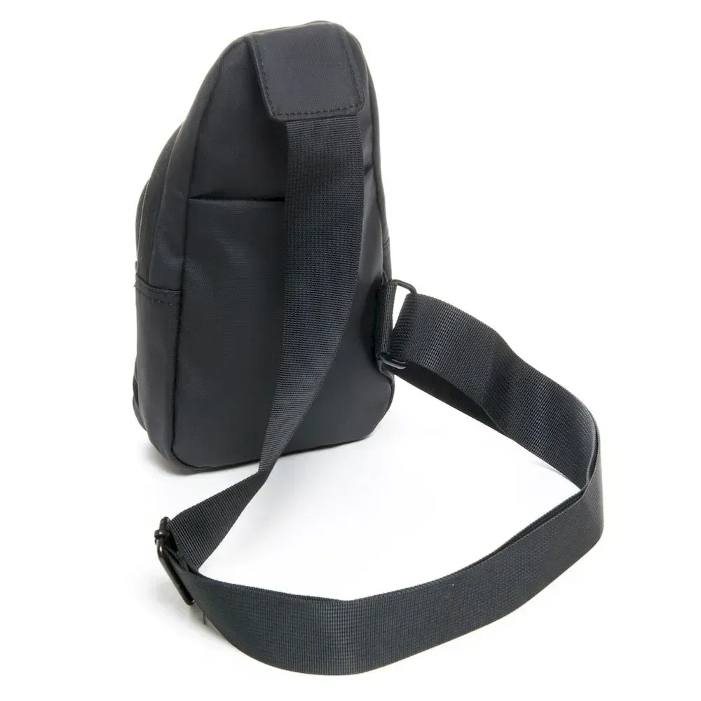 Мужская сумка Lanpad. Одно отделение, закрывается на молнию. Внутри отделения есть открытый карман. На фасаде находится карман на молнии, а на обратной стороне открытый карман. Регулируемый плечевой ремень.