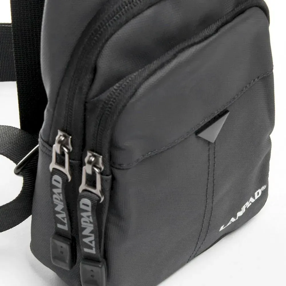Мужская сумка Lanpad. Одно отделение, закрывается на молнию. Внутри отделения есть открытый карман. На фасаде находится карман на молнии, а на обратной стороне открытый карман. Регулируемый плечевой ремень.