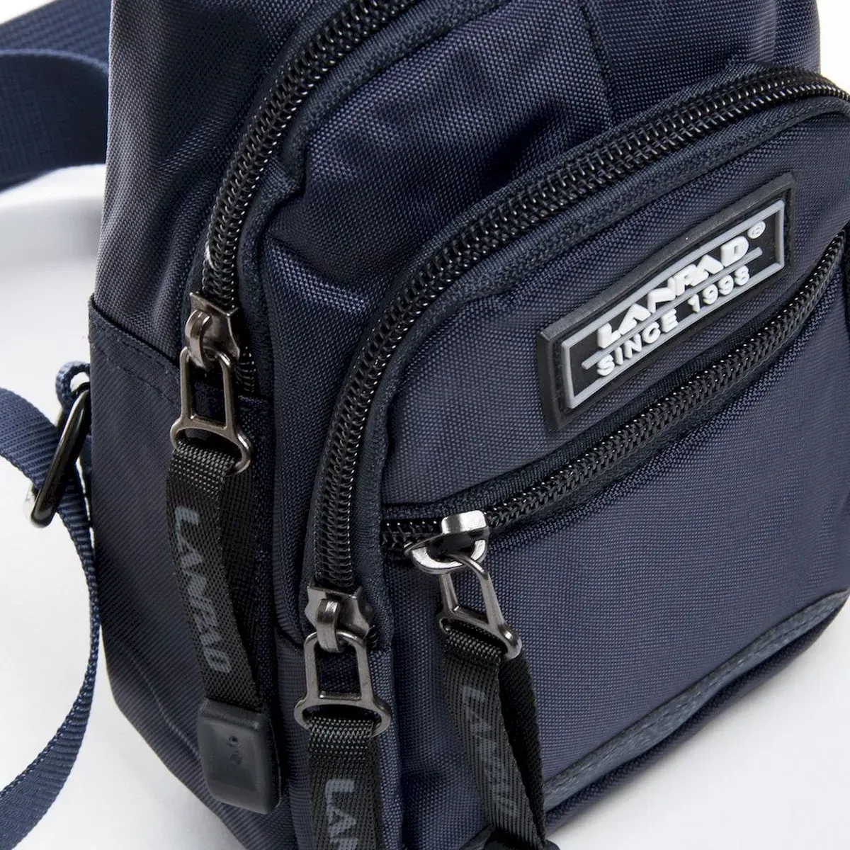 Мужская сумка Lanpad. Два отделения закрываются на молнию. Внутри одного отделения есть открытый карман. На фасаде есть карман на молнии. В комплекте регулируемый ремень. Размер (см.) 22*14*5