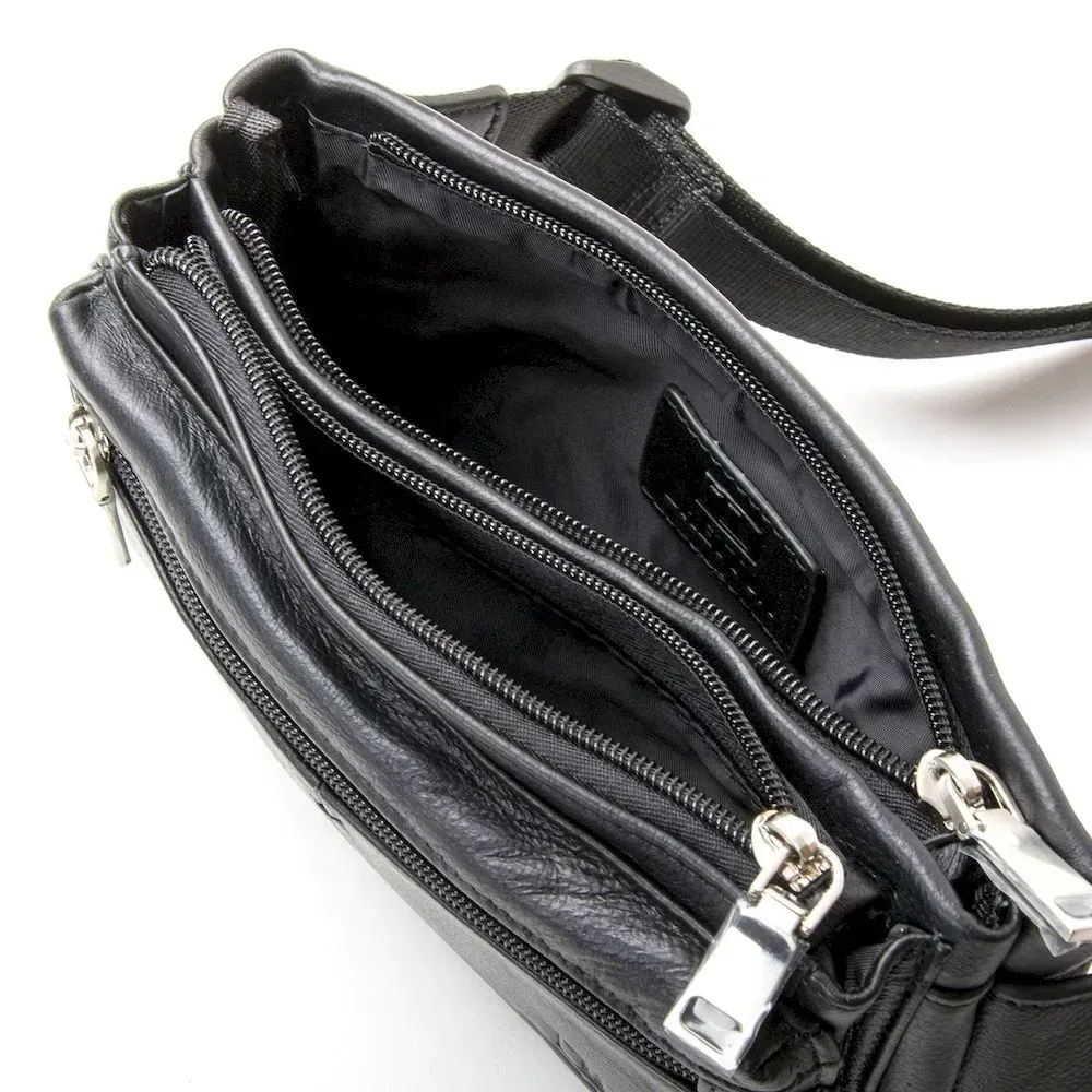 Мужская кожаная сумка Bretton. Можно носить на поясе или через плечо. Два отделения, закрываются на молнию. На фасаде есть один карман на молнии. Регулируемый ремень, шириной 3см.