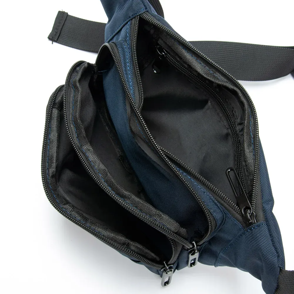 Мужская сумка на пояс/плечо Lanpad. Три отделения, закрываются на молнии. Внутри основного отделения есть боковой большой карман на молнии. На фасаде находятся один карман на молнии.