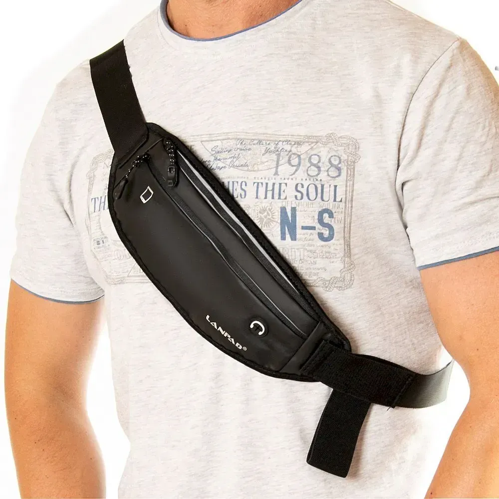 Мужская компактная сумка пояс/плечо Lanpad. Одно отделение, закрывается на молнию. На фасаде расположен один карман на молнии. Регулируемый ремень шириной 4см.
