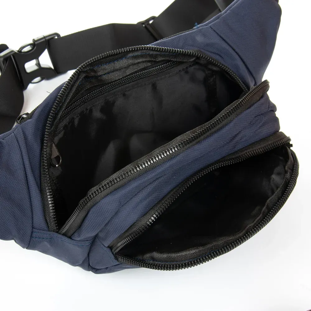 Мужская сумка на пояс/плечо Lanpad. Два отделения, закрываются на молнию. Внутри основного отделения есть боковой карман на молнии. На фасаде находится карман на застежке-липучке, а на обратной стороне сумки - на молнии.