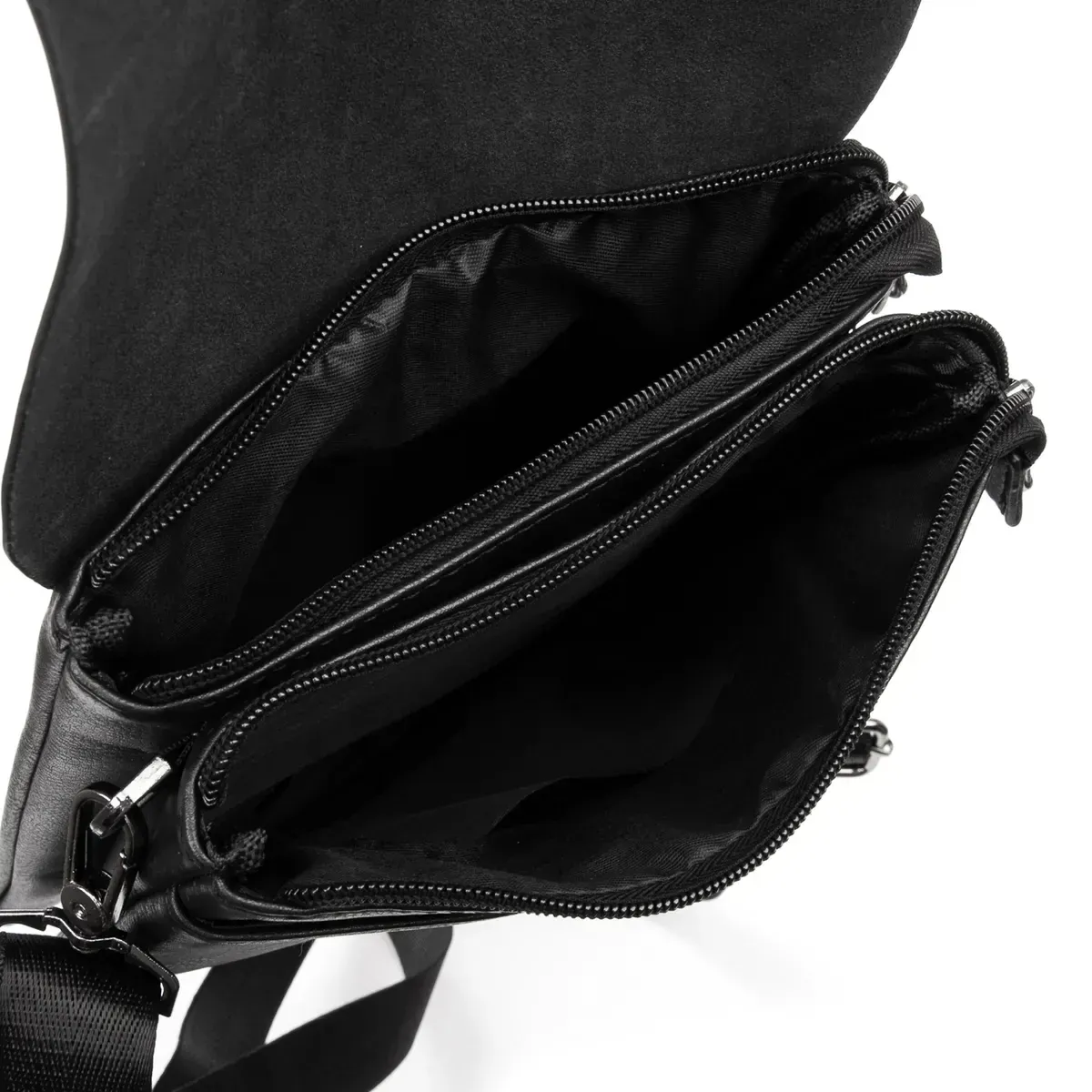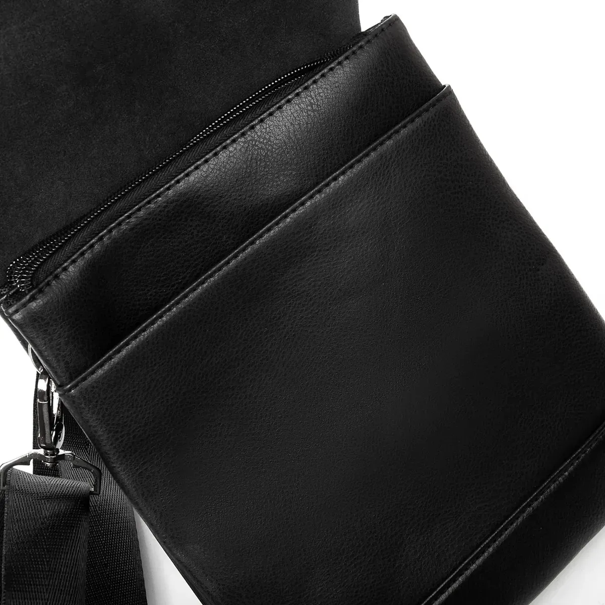 Мужская сумка - планшет Dr.Bond. Клапан изготовлен из натуральной плотной кожи, фиксируется на два скрытых магнита. Под клапаном находятся два отделения, которые дополнительно закрываются на молнии. Отделения разделены карманом-перегородкой. На фасаде под клапаном расположен большой открытый карман. На обратной стороне сумки есть карман на молнии.