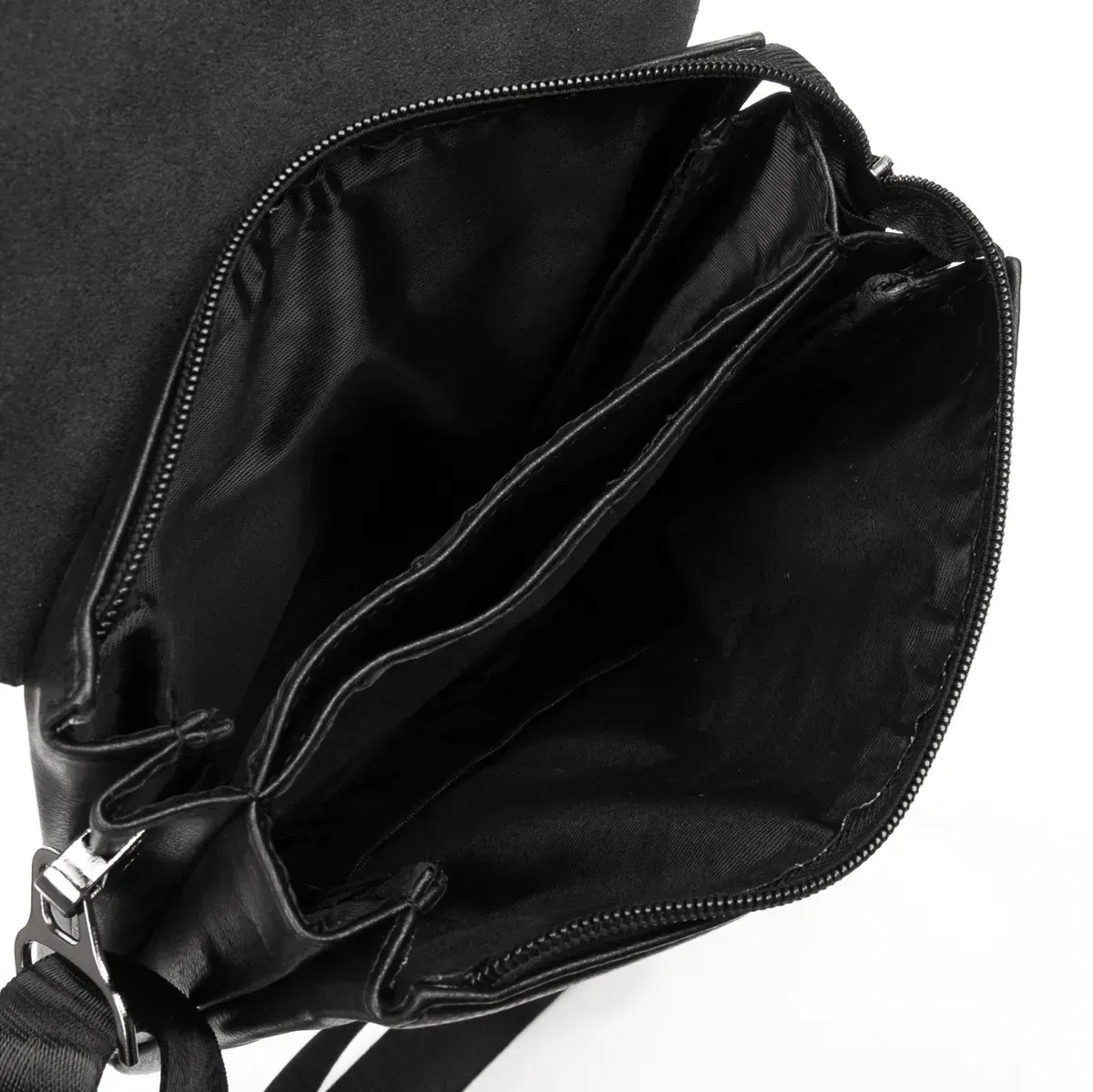 Мужская сумка - планшет Dr.Bond. Клапан изготовлен из натуральной плотной кожи, фиксируется на два скрытых магнита. Под клапаном находятся два отделения, которые дополнительно закрываются на общую молнию. Отделения разделены карманом-перегородкой. На фасаде находится большой открытый карман. На обратной стороне сумки есть карман на молнии.