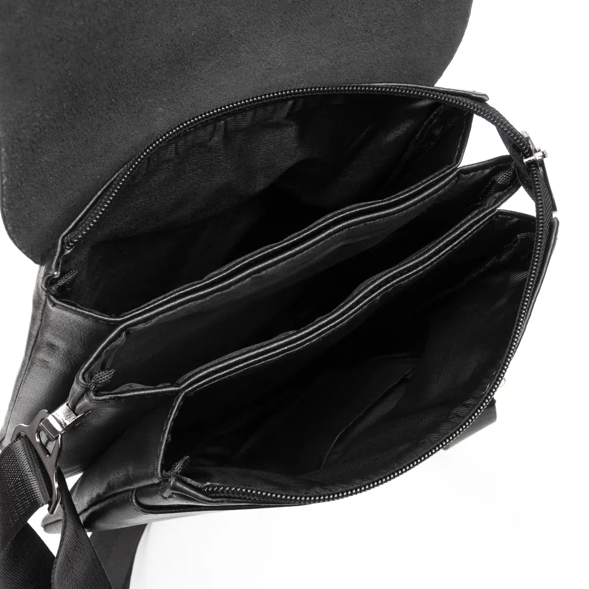 Мужская сумка - планшет Dr.Bond. Клапан изготовлен из натуральной плотной кожи, фиксируется на два скрытых магнита. Под клапаном находятся три отделения, которые дополнительно закрываются на общую молнию. Отделения разделены карманами-перегородками. На фасаде находится большой открытый карман. На обратной стороне сумки есть карман на молнии.