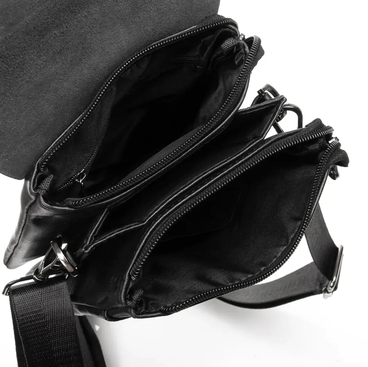 Мужская сумка - планшет Dr.Bond. Клапан изготовлен из натуральной плотной кожи, фиксируется на два скрытых магнита. Под клапаном находятся три отделения: боковые дополнительно закрываются на молнию, и открытое центральное. Отделения разделены карманами-перегородками. На фасаде под клапаном расположен большой открытый карман. На обратной стороне сумки есть карман на молнии.