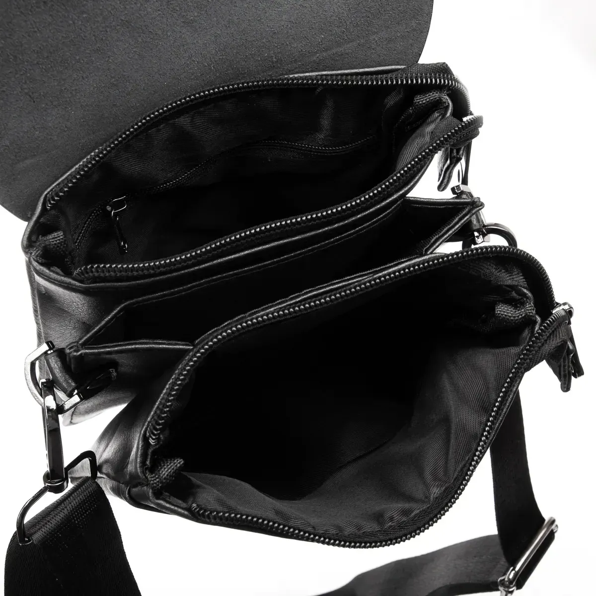Мужская сумка - планшет Dr.Bond. Клапан изготовлен из натуральной плотной кожи, фиксируется на два скрытых магнита. Под клапаном находятся три отделения: боковые дополнительно закрываются на молнию, и открытое центральное. Отделения разделены карманами-перегородками. На фасаде под клапаном расположен большой открытый карман. На обратной стороне сумки есть карман на молнии.