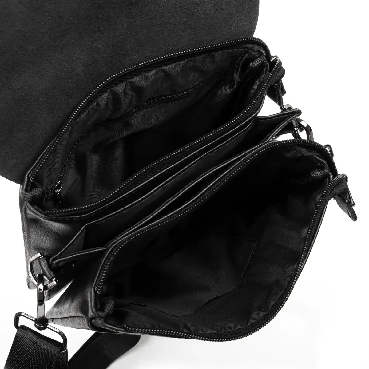 Мужская сумка - планшет Dr.Bond. Клапан изготовлен из натуральной плотной кожи, фиксируется на два скрытых магнита. Под клапаном находятся три отделения: боковые дополнительно закрываются на молнию, и открытое центральное. Отделения разделены карманами-перегородками. На фасаде под клапаном расположен большой открытый карман. На обратной стороне сумки есть карман на молнии.